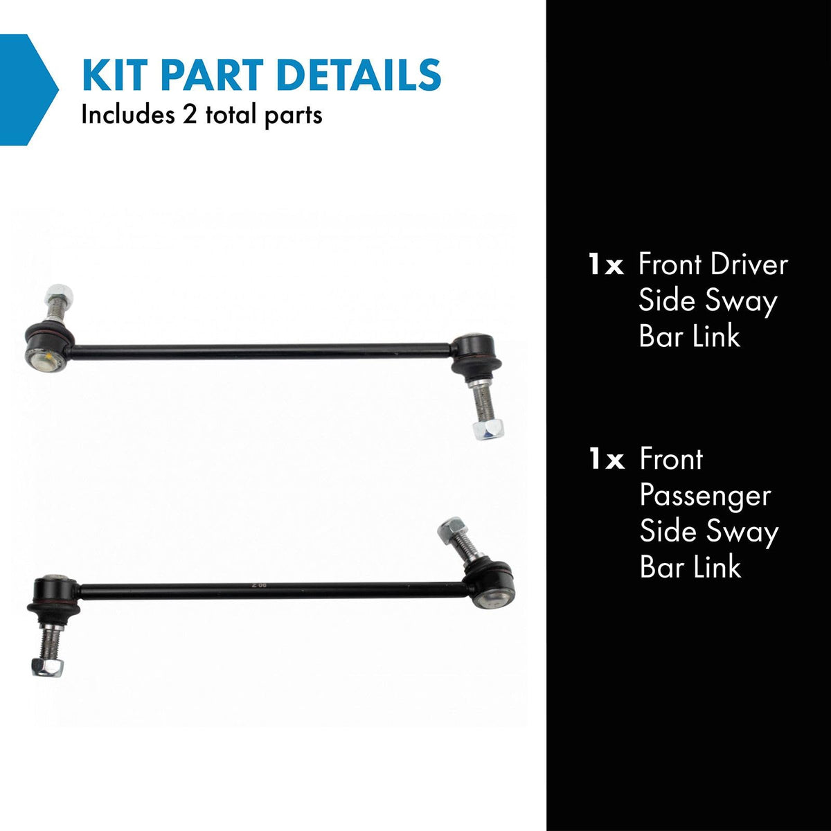 2 Piece Sway Bar Link SetKit Includes(1) Front Driver Side Sway Bar Link(1) Front Passenger Side Sway Bar LinkFitmentCompatible with: 2008-11 Mercedes Benz C300 4Matic Sport Front Driver & Passenger SideCompatible with: 2008-11 Mercedes Benz C300 4Matic Luxury Front Driver & Passenger SideCompatible with: 2010-15 Mercedes Benz GLK350 Front Driver & Passenger SideCompatible with: 2013-14 Mercedes Benz E350 4Matic Front Driver & Passenger SideCompatible with: 2012 Mercedes Benz C300 Front Driver & Passenger SideCompatible with: 2015-17 Mercedes Benz E400 4Matic Coupe Front Driver & Passenger SideCompatible with: 2012-15 Mercedes Benz C350 4Matic Front Driver & Passenger SideCompatible with: 2013-15 Mercedes Benz GLK250 Front Driver & Passenger SideProduct AttributesQuantity: 2 PieceReference NumbersBeck/Arnley: 101-7060, 101-7061Dorman - OE Solutions: 531-197, 531-198Mercedes-Benz: 2043200789, 204320078964, 2043202289, 204320228964Mevotech: MS108105, MS108106MOOG Chassis Products: K750335, K750336
