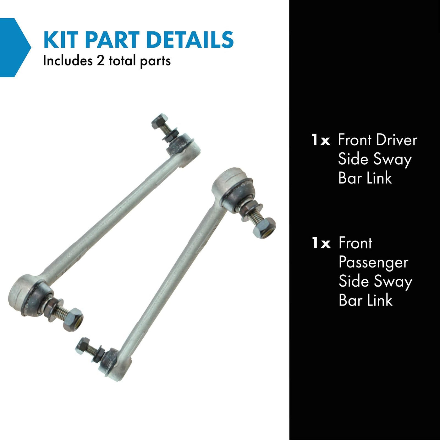 2 Piece Sway Bar Link SetKit Includes(1) Front Driver Side Sway Bar Link(1) Front Passenger Side Sway Bar LinkFitmentCompatible with: 2007-11 BMW 328i Rear Wheel Drive Front Driver & Passenger SideCompatible with: 2007-11 BMW 335i Rear Wheel Drive Front Driver & Passenger SideCompatible with: 2012-13 BMW 328i Convertible Front Driver & Passenger SideCompatible with: 2012-13 BMW 328i Coupe Rear Wheel Drive Front Driver & Passenger SideCompatible with: 2013-15 BMW X1 sDrive28i Rear Wheel Drive Front Driver & Passenger SideCompatible with: 2006 BMW 325i Sedan Rear Wheel Drive Front Driver & Passenger SideCompatible with: 2008-13 BMW 128i Front Driver & Passenger SideCompatible with: 2012-13 BMW 328i Wagon Rear Wheel Drive Front Driver & Passenger SideCompatible with: 2009-16 BMW Z4 Rear Wheel Drive Front Driver & Passenger SideCompatible with: 2006 BMW 330i Sedan Rear Wheel Drive Front Driver & Passenger SideCompatible with: 2008-13 BMW 135i Front Driver & Passenger SideCompatible with: 2012-13 BMW 335i Coupe Rear Wheel Drive Front Driver & Passenger SideCompatible with: 2012-13 BMW 335i Convertible Front Driver & Passenger SideCompatible with: 2009-11 BMW 335d Front Driver & Passenger SideCompatible with: 2011-13 BMW 335is Front Driver & Passenger SideProduct AttributesQuantity: 2 PieceReference NumbersBeck/Arnley: 101-6399, 101-6400BMW: 31356765933, 31356765934DIY Solutions: SUS02906, SUS07013, SUS07014Mevotech: MK750002, MK750003MOOG Chassis Products: K750002, K750003RTS: 97-99581-1, 97-99581-2