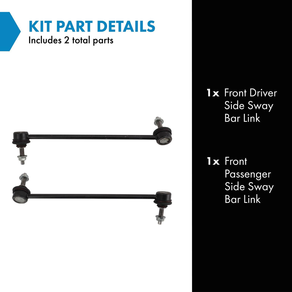 2 Piece Sway Bar Link Setkit Includes(1) Front Driver Side Sway Bar Link(1) Front Passenger Side Sway Bar Linkfitmentcompatible With: 2011-17 Chevrolet Caprice Front Driver & Passenger Sidecompatible With: 2014-17 Chevrolet Ss Front Driver & Passenger Sideproduct Attributesquantity: 2 Piecereference Numbersdelphi: Tc7577, Tc7578General Motors: 92253276, 92253277Mevotech Supreme: Ms508133, Ms508134Mevotech: Ms508133, Ms508134Moog Chassis Products: K750625, K750626Suspensia: X07Sl0809, X07Sl0810