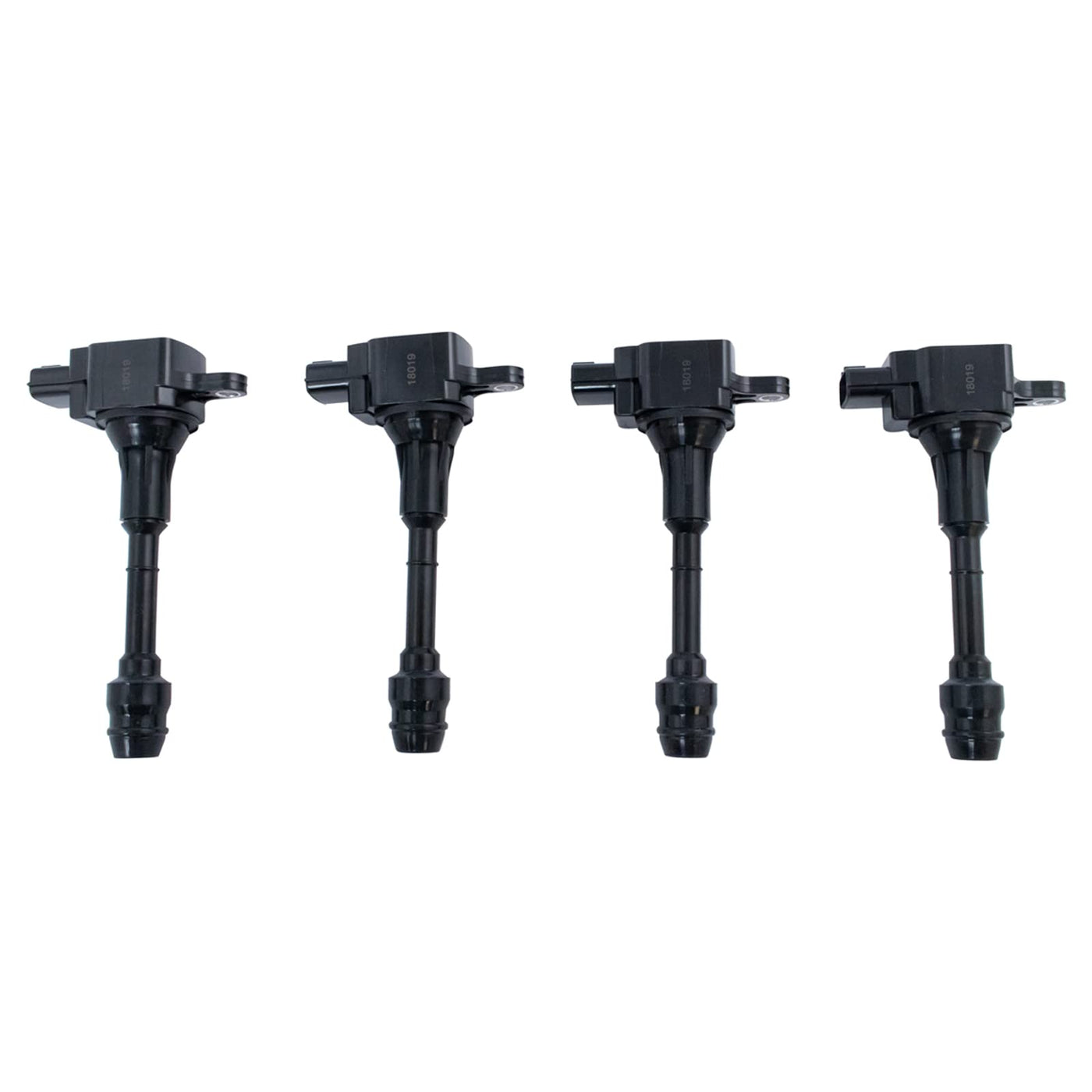 4 Piece Ignition Coil SetKit Includes(4) Ignition CoilsFitmentCompatible with: 2002-06 Nissan Altima L4 2.5LCompatible with: 2002-06 Nissan Sentra L4 2.5LProduct AttributesQuantity: 4 PieceIgnition Coil Color: BlackIgnition Coil Type: Direct ReplacementProduct Features High dielectric epoxy and reinforced bobbins for extended service life Rubber, Silicone, or Phenolic Resin Shell: Prevents premature boot wear Application Specific Design: No modifications required Complete repair to restore your engine to like-new conditionItem DetailsTRQ ignition coils will have your engine running like new. TRQ ignition coils are manufactured to precise specifications using premium raw materials to optimize each vehicle's ignition system. To ensure peak performance, TRQ recommends replacing ignition coils in sets to prevent electrical output imbalances. All products are fit and road-tested in our Massachusetts R&D facility to ensure we deliver on our promise of Trusted Reliable Quality.Reference NumbersStandard Ignition: UF-350