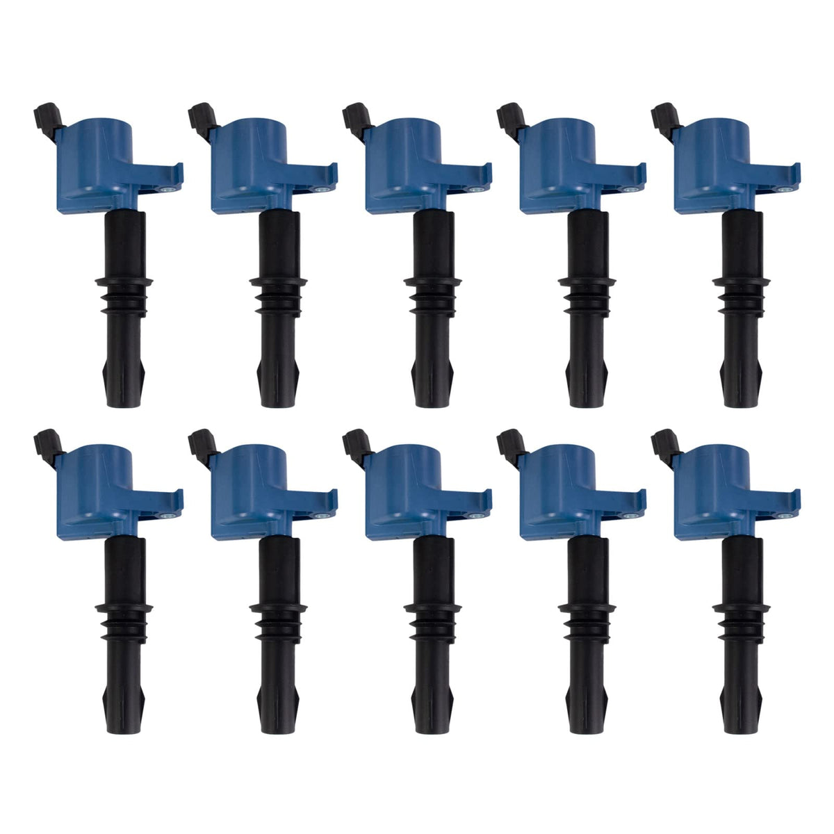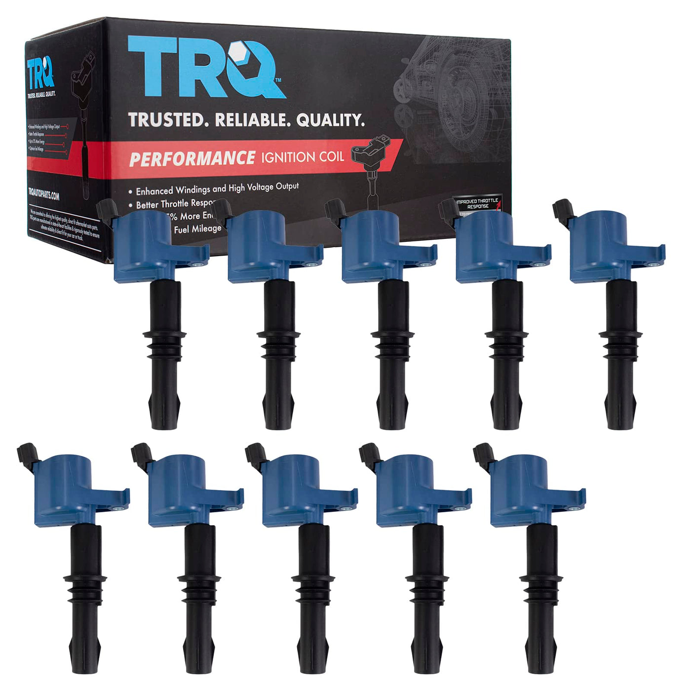 10 Piece Performance Ignition Coil SetKit Includes(10) Ignition CoilsFitmentCompatible with: 2005-07 Ford F250 Super Duty Truck V10 6.8LCompatible with: 2005-07 Ford F350 Super Duty Truck V10 6.8LCompatible with: 2008 Ford F250 Super Duty Truck V10 6.8L with Black Ignition Coil BootCompatible with: 2008 Ford F350 Super Duty Truck V10 6.8L with Black Ignition Coil BootCompatible with: 2007-08 Ford F53 V10 6.8L with Black Ignition Coil BootCompatible with: 2008 Ford F450 Truck V10 6.8L with Black Ignition Coil BootCompatible with: 2005-08 Ford F550 Truck V10 6.8LCompatible with: 2005-07 Ford F450 Truck V10 6.8LCompatible with: 2006 Ford F53 V10 6.8LProduct AttributesGrade Type: PerformanceQuantity: 10 PieceIgnition Coil Color: BlueIgnition Coil Type: PerformanceProduct Features High dielectric epoxy and reinforced bobbins for extended service life Rubber, Silicone, or Phenolic Resin Shell: Prevents premature boot wear Application Specific Design: No modifications required Complete repair to restore your engine to like-new conditionItem DetailsTRQ ignition coils will have your engine running like new. TRQ ignition coils are manufactured to precise specifications using premium raw materials to optimize each vehicle's ignition system. To ensure peak performance, TRQ recommends replacing ignition coils in sets to prevent electrical output imbalances. All products are fit and road-tested in our Massachusetts R&D facility to ensure we deliver on our promise of Trusted Reliable Quality.Reference NumbersFord: 3L3E-12A366-CAStandard Ignition: FD-508Standard Motor Products: FD508