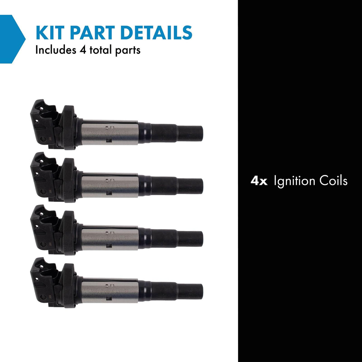 4 Piece Ignition Coil SetKit Includes(4) Ignition CoilsFitmentCompatible with: 2009-10 Mini Cooper L4 1.6L Naturally Aspirated with Eldor Ignition CoilsCompatible with: 2008 Mini Cooper L4 1.6L Naturally AspiratedProduct AttributesQuantity: 4 PieceIgnition Coil Color: BlackIgnition Coil Type: Direct ReplacementProduct Features Enhanced Efficiency: Up to 15% more energy transferred to spark plugs High Temperature Epoxy: Enhanced service life Faster rise times and duration Improved throttle responseItem DetailsTRQ ignition coils will have your engine running like new. TRQ ignition coils are manufactured to precise specifications using premium raw materials to optimize each vehicle's ignition system. To ensure peak performance, TRQ recommends replacing ignition coils in sets to prevent electrical output imbalances. All products are fit and road-tested in our Massachusetts R&D facility to ensure we deliver on our promise of Trusted Reliable Quality.Reference NumbersBeck/Arnley: 178-8541BMW: 12138657273Carquest Premium Vehicle Solutions: EBC1328Delphi: GN10328FVP: 1IC554Herko Automotive: B204, B266IMC: 72906025001, 72906025066Karlyn: 20360Motorad: 1IC554PRENCO: 36-8339Standard Ignition: UF804Standard Import: UF804Standard Motor Products: UF-804, UF804STI: 20360, UF804