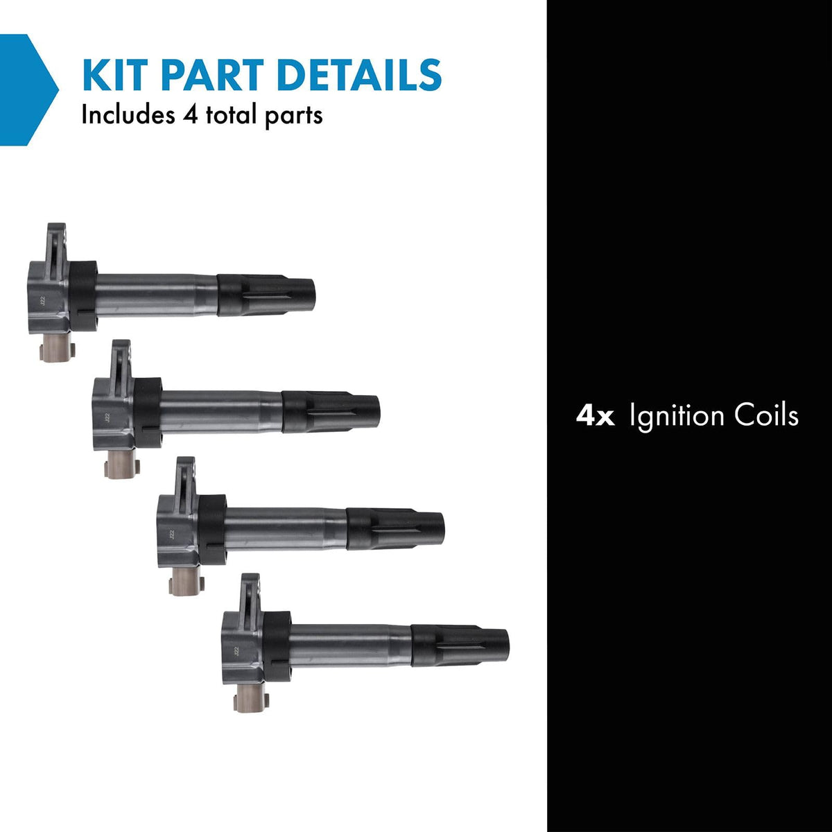 4 Piece Ignition Coil SetKit Includes(4) Ignition CoilsFitmentCompatible with: 2010-13 Suzuki SX4 L4 2.0LCompatible with: 2010-13 Suzuki Kizashi L4 2.4LCompatible with: 2009-13 Suzuki Grand Vitara L4 2.4LProduct AttributesQuantity: 4 PieceIgnition Coil Color: BlackIgnition Coil Type: Direct ReplacementProduct Features High dielectric epoxy and reinforced bobbins for extended service life Rubber, Silicone, or Phenolic Resin Shell: Prevents premature boot wear Application Specific Design: No modifications required Complete repair to restore your engine to like-new conditionItem DetailsTRQ ignition coils will have your engine running like new. TRQ ignition coils are manufactured to precise specifications using premium raw materials to optimize each vehicle's ignition system. To ensure peak performance, TRQ recommends replacing ignition coils in sets to prevent electrical output imbalances. All products are fit and road-tested in our Massachusetts R&D facility to ensure we deliver on our promise of Trusted Reliable Quality.Reference NumbersAirtex Engine Management: 5C1789Beck/Arnley: 178-8504Carquest Premium Vehicle Solutions: EBC1231Delphi: GN10615Duralast: C1732MotorKing: SDJK40NAPA: IC737SBStandard Ignition: UF634Standard Import: UF634Standard Motor Products: UF-634, UF634STI: UF634Suzuki: 33400-51K40, 33400-51K60Wells: 52-2144, C1732WVE: 5C1789
