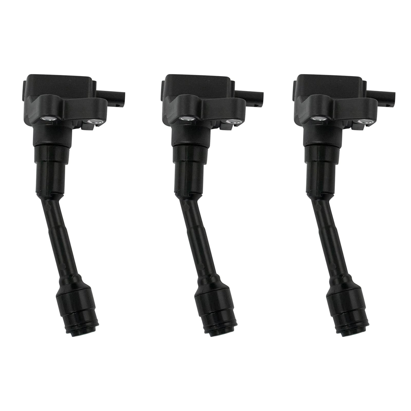 3 Piece Ignition Coil SetKit Includes(3) Ignition CoilsFitmentCompatible with: 2015-18 Ford Focus L3 1.0LCompatible with: 2018-21 Ford EcoSport L3 1.0LCompatible with: 2014-17 Ford Fiesta L3 1.0LProduct AttributesQuantity: 3 PieceIgnition Coil Color: BlackIgnition Coil Type: Direct ReplacementProduct Features High dielectric epoxy and reinforced bobbins for extended service life Rubber, Silicone, or Phenolic Resin Shell: Prevents premature boot wear Application Specific Design: No modifications required Complete repair to restore your engine to like-new conditionItem DetailsTRQ ignition coils will have your engine running like new. TRQ ignition coils are manufactured to precise specifications using premium raw materials to optimize each vehicle's ignition system. To ensure peak performance, TRQ recommends replacing ignition coils in sets to prevent electrical output imbalances. All products are fit and road-tested in our Massachusetts R&D facility to ensure we deliver on our promise of Trusted Reliable Quality.Reference NumbersBWD: E1236Delphi: GN10635Echlin: IC842Ford: CM5G-12A366-CB, CM5Z12029CMotorcraft: DG-556Spectra Premium: C-949Standard Ignition: UF-736Standard Motor Products: UF736