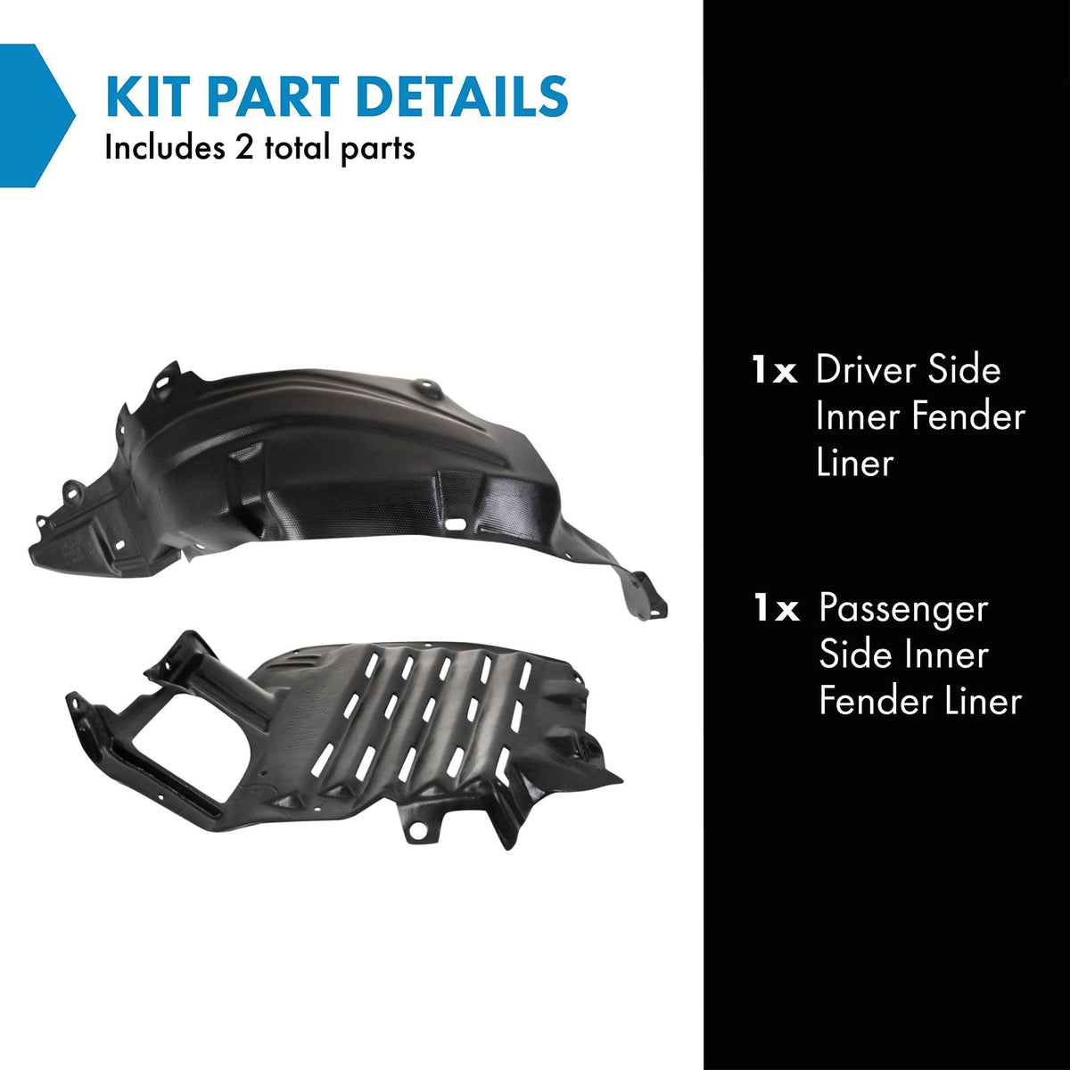 Trq Inner Fender Liner Set Compatible With 2001-2005 Mazda Miata Ma1248122 Ma1251109