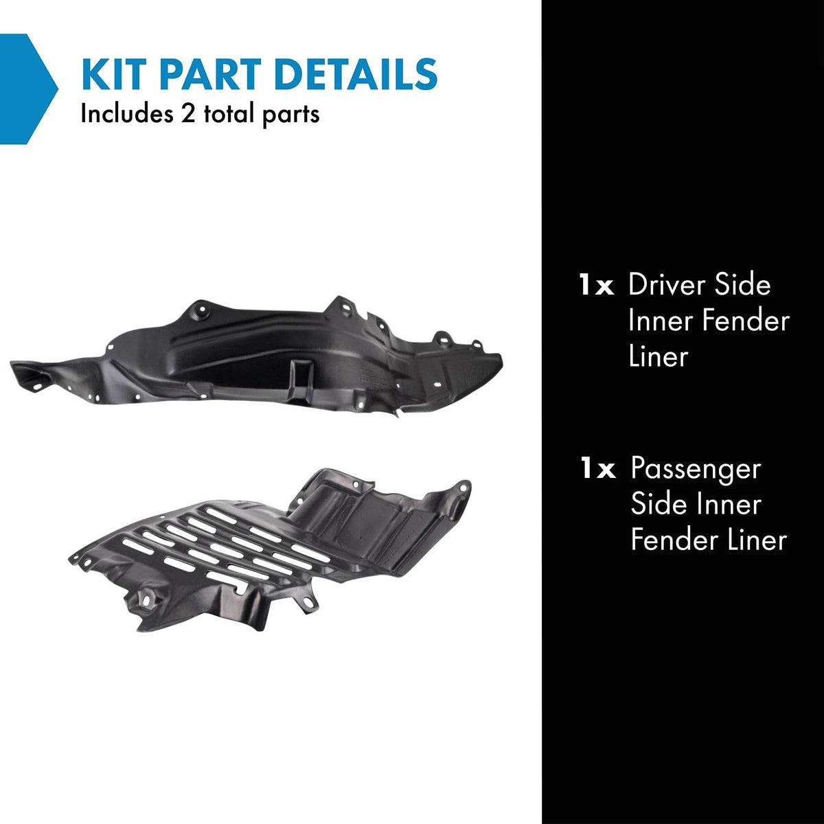 Trq Inner Fender Liner Set Compatible With 2001-2005 Mazda Miata Ma1249122 Ma1250109