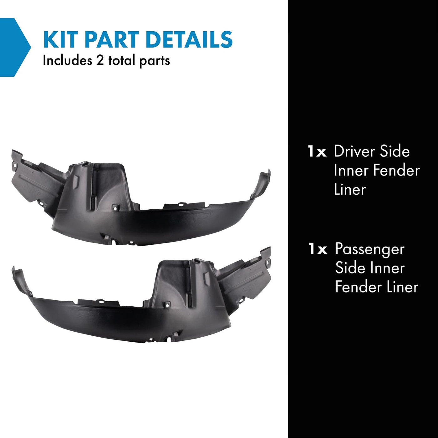 Trq Inner Fender Liner Set Compatible With 2002-2005 Hyundai Sonata Hy1248108 Hy1249108