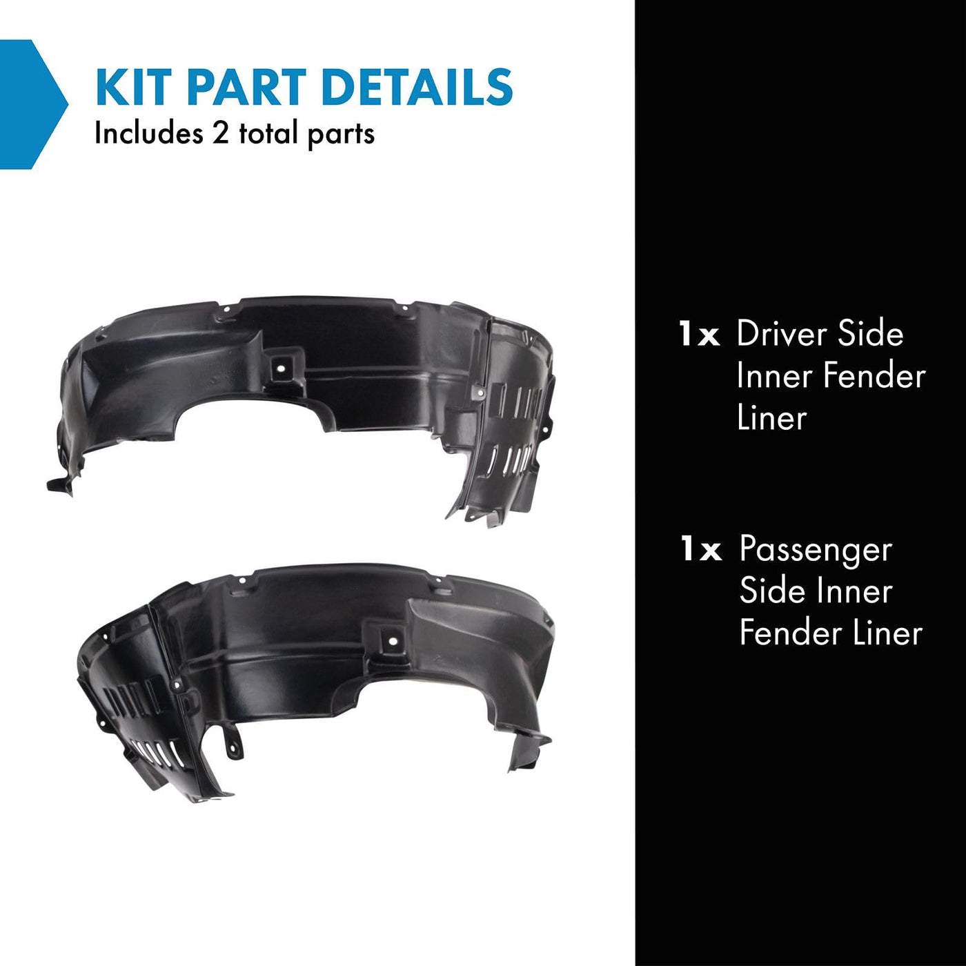 Trq Inner Fender Liner Set Compatible With 2004-2005 Mitsubishi Endeavor Mi1250108 Mi1251108