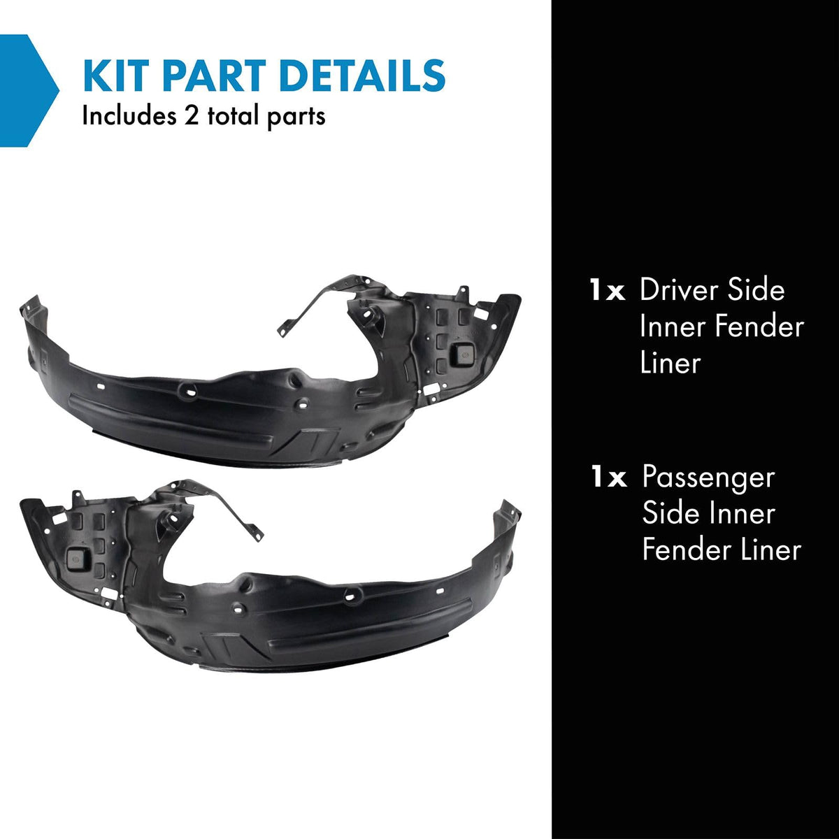 Trq Inner Fender Liner Set Compatible With 2005-2007 Honda Odyssey Ho1248123 Ho1249124