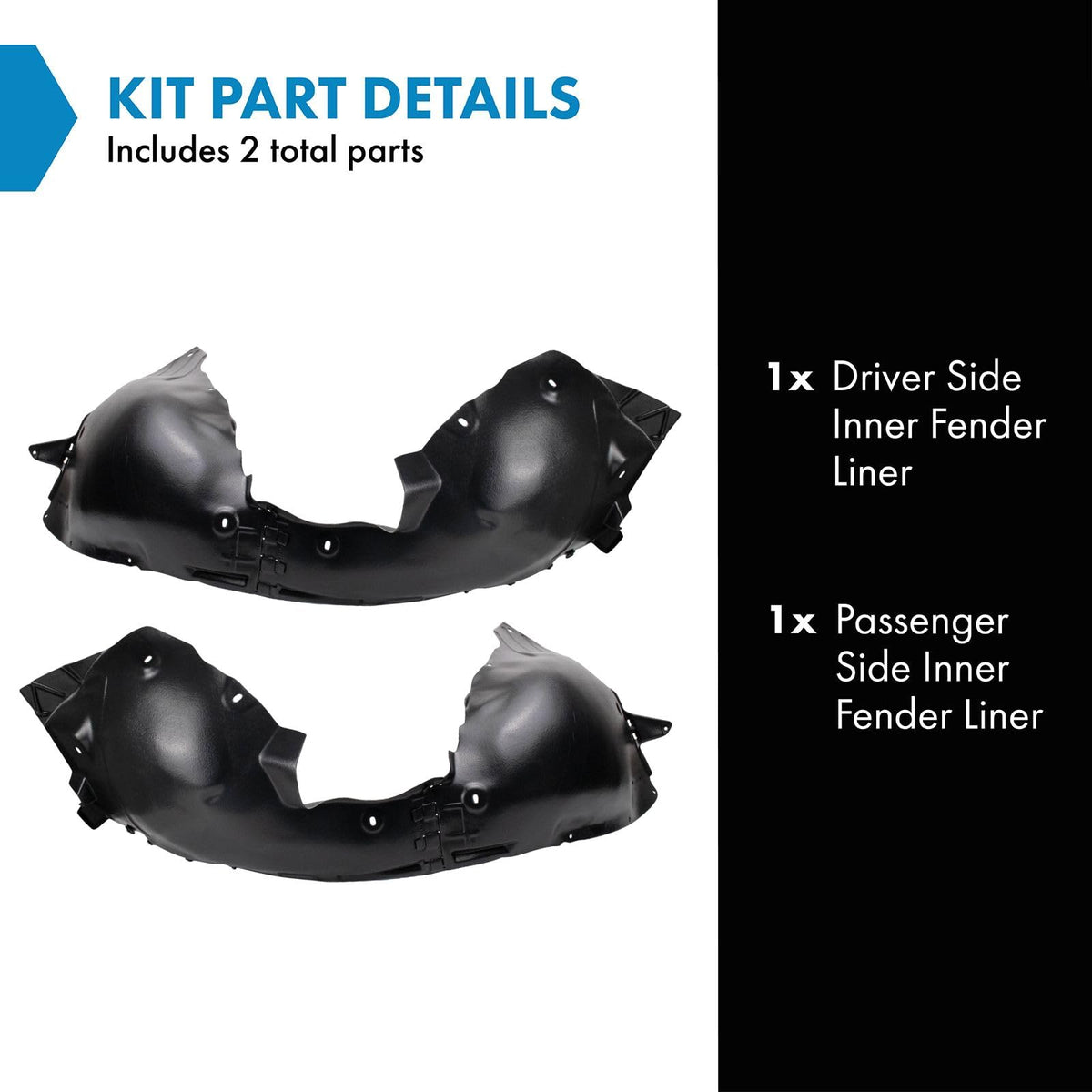 Trq Inner Fender Liner Set Compatible With 2011-2017 Buick Regal Gm1248283 Gm1249283
