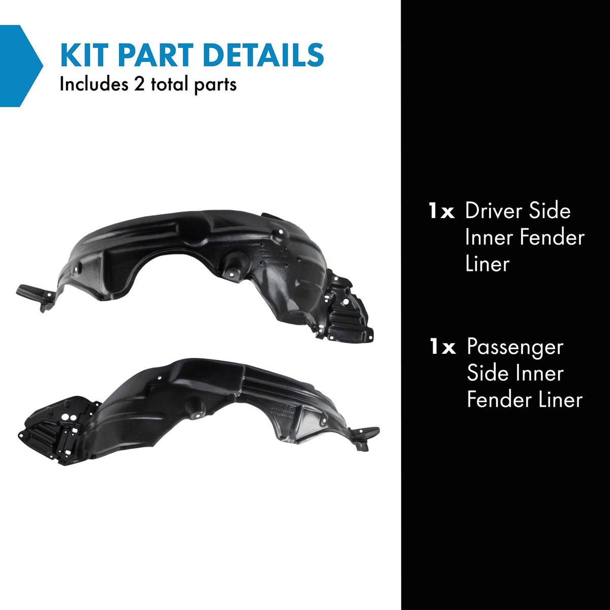 Trq Inner Fender Liner Set Compatible With 2012 Toyota Yaris To1249168 To1250120