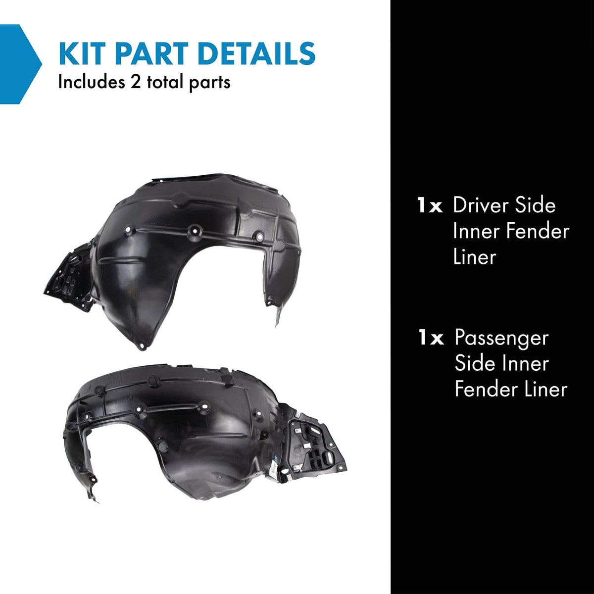Trq Inner Fender Liner Set Compatible With 2017-2018 Honda Civic Ho1248158 Ho1249176