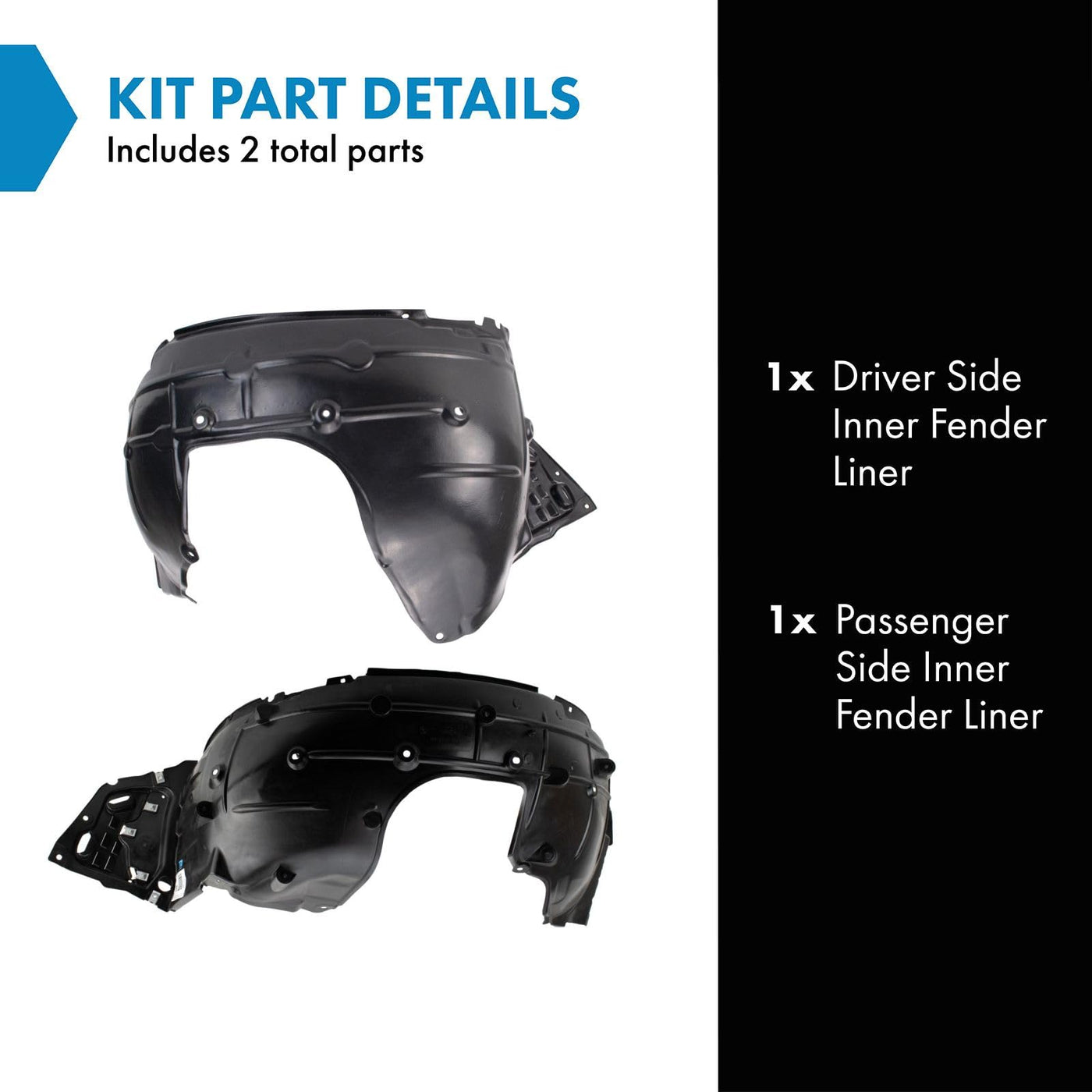 Trq Inner Fender Liner Set Compatible With 2017-2018 Honda Civic Ho1248176 Ho1249158