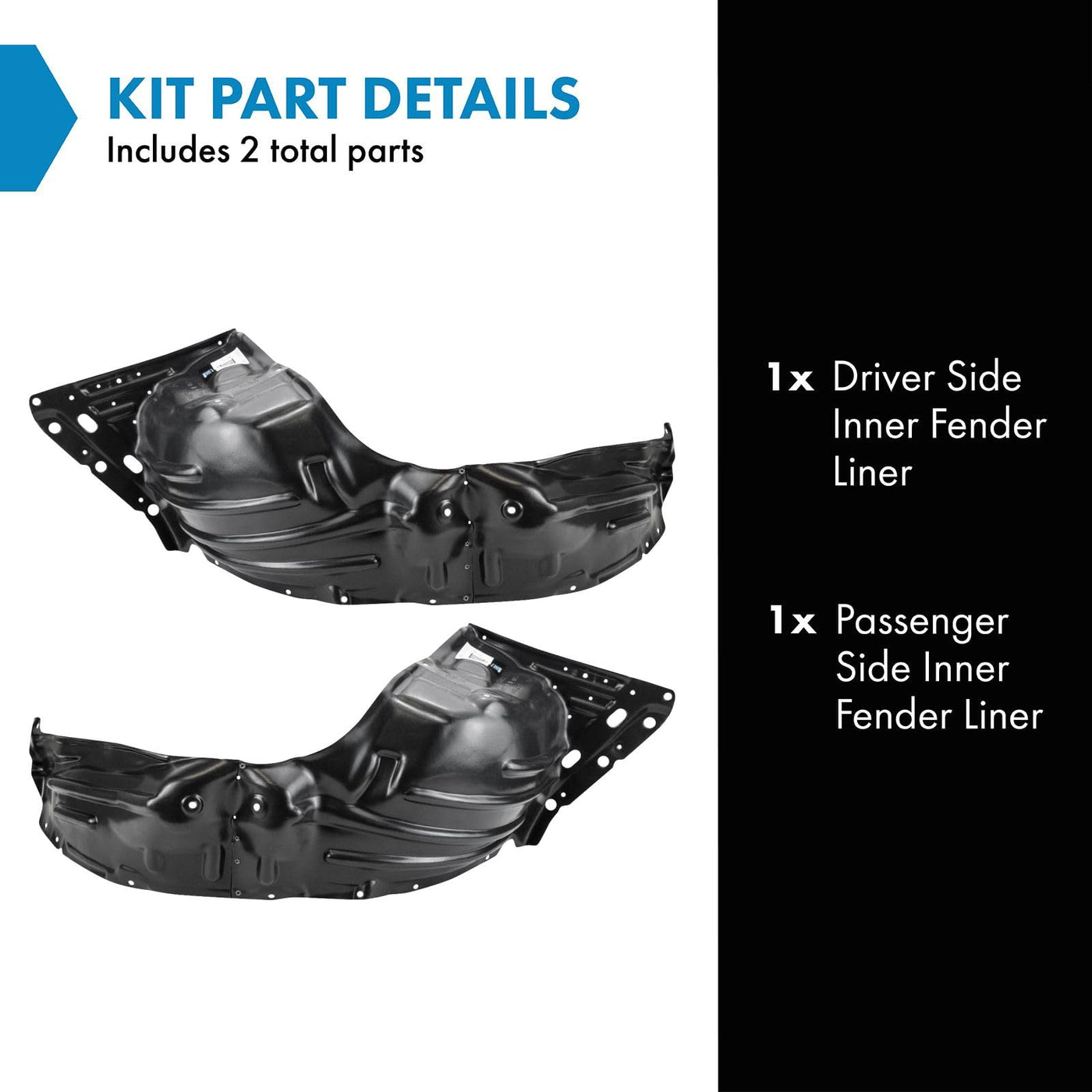 Trq Inner Fender Liner Set Compatible With 2017-2020 Mitsubishi Mirage G4 Mi1248132 Mi1249132