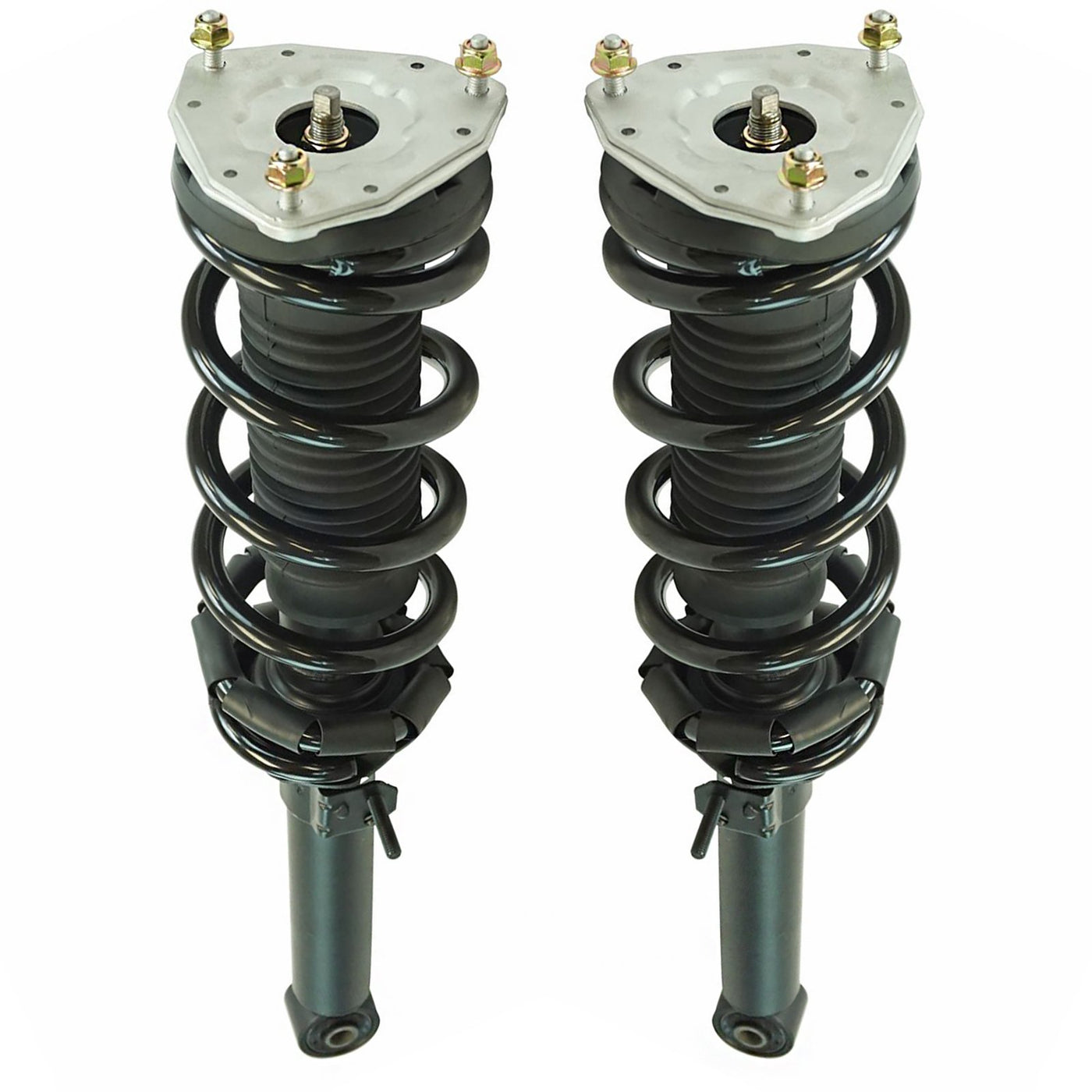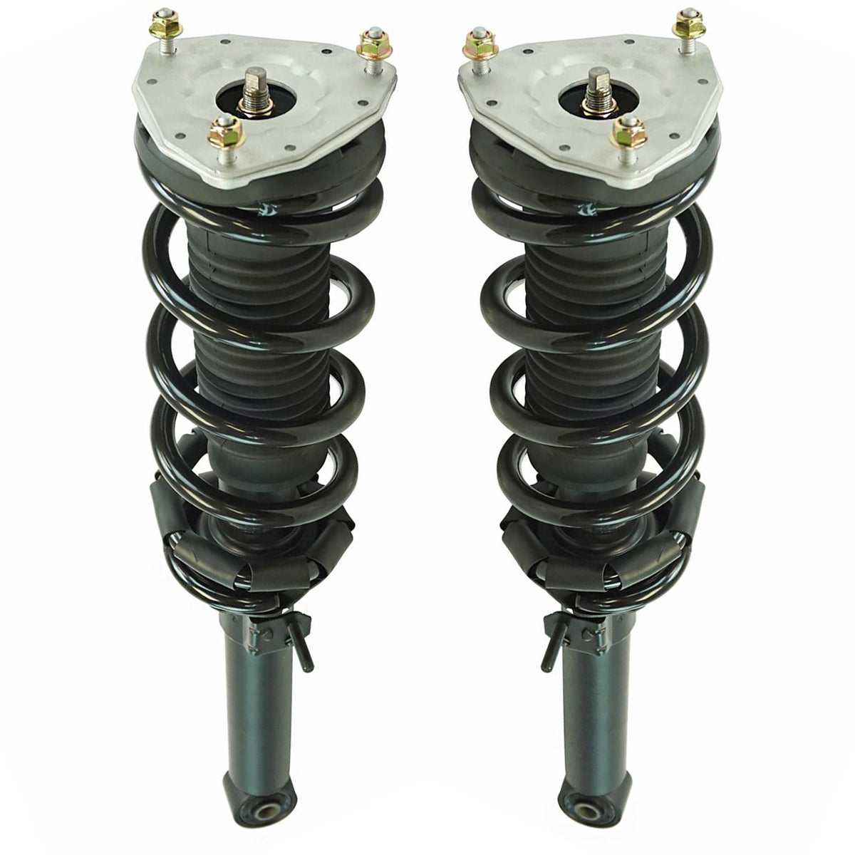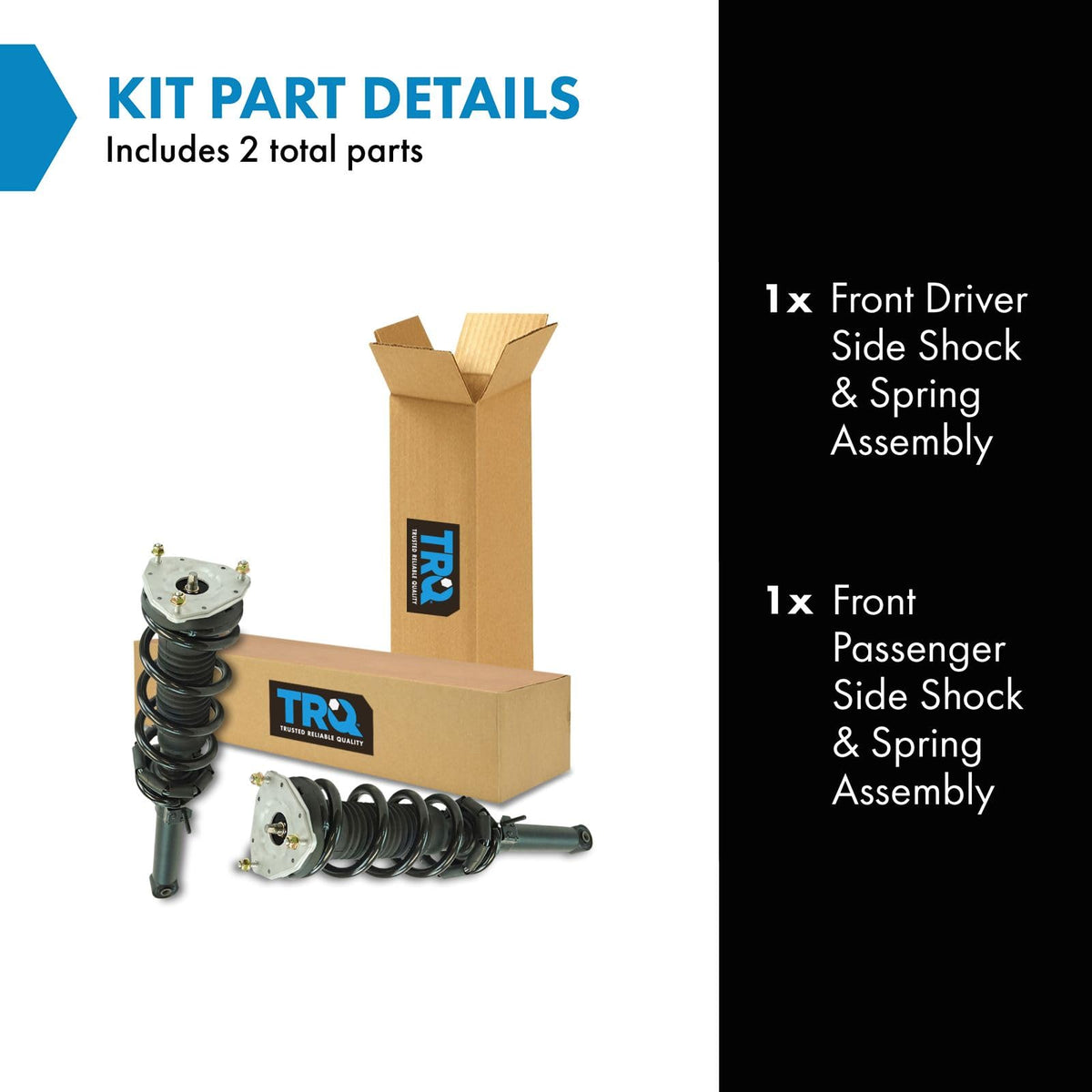 2 Piece Shock & Spring Assembly SetKit Includes(1) Front Driver Side Shock & Spring Assembly(1) Front Passenger Side Shock & Spring AssemblyFitmentCompatible with: 2009-13 Infiniti G37 Sedan Rear Wheel Drive without 4 Wheel Steering Front Driver & Passenger SideCompatible with: 2007-08 Infiniti G35 Sedan Rear Wheel Drive without 4 Wheel Steering Front Driver & Passenger SideCompatible with: 2011-12 Infiniti G25 Rear Wheel Drive Front Driver & Passenger SideCompatible with: 2015 Infiniti Q40 Rear Wheel Drive Front Driver & Passenger SideProduct AttributesQuantity: 2 PieceProduct Features Loaded Struts: Pre-assembled application specific design Application Specific Design: No modifications necessary Matched Pair: Improved comfort and extended service life Restored Performance: Reduced body sway and vibrationItem DetailsTRQ fully loaded shocks and struts are manufactured using premium raw materials and calibrated to restore original ride comfort. TRQ shocks are fully loaded featuring a pre-loaded bearing plate, upper and lower spring isolator, upper spring seat, coil spring, boot kit, and premium strut. TRQ recommends replacing your shocks or struts in pairs to ensure even wear of components and improved ride comfort. All products are fit and road-tested in our Massachusetts R&D facility to ensure we deliver on our promise of Trusted Reliable Quality.Reference NumbersFocus Auto Parts: 1345760LGSP: 882686KYB: SR4646, SR4647Sensen Shocks & Struts: 9214-0621Unity Automotive: 11413, 11414
