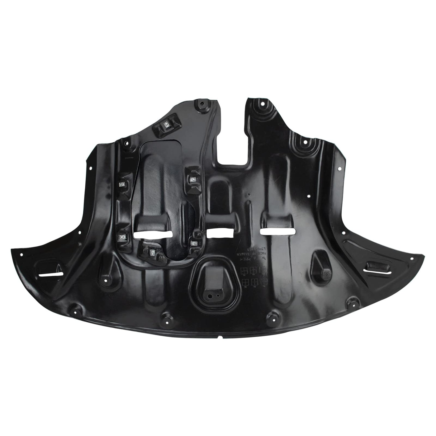 Q: What material is the TRQ Lower Forward Engine Splash Shield made from?A: The TRQ Lower Forward Engine Splash Shield is made from durable plastic, ensuring reliable protection for your engine.