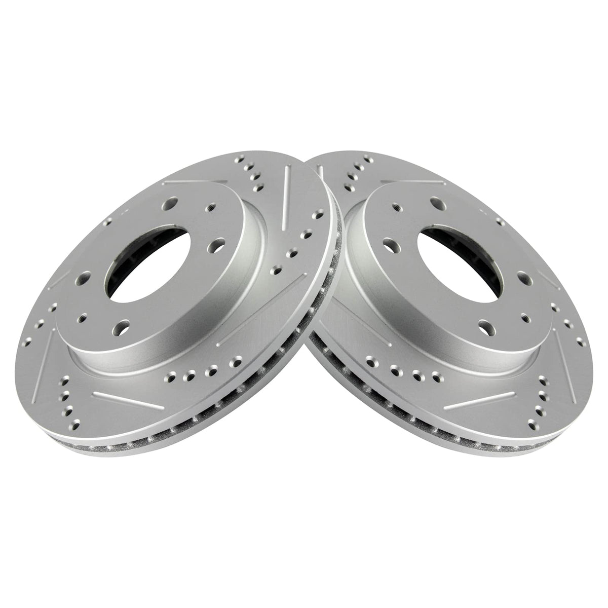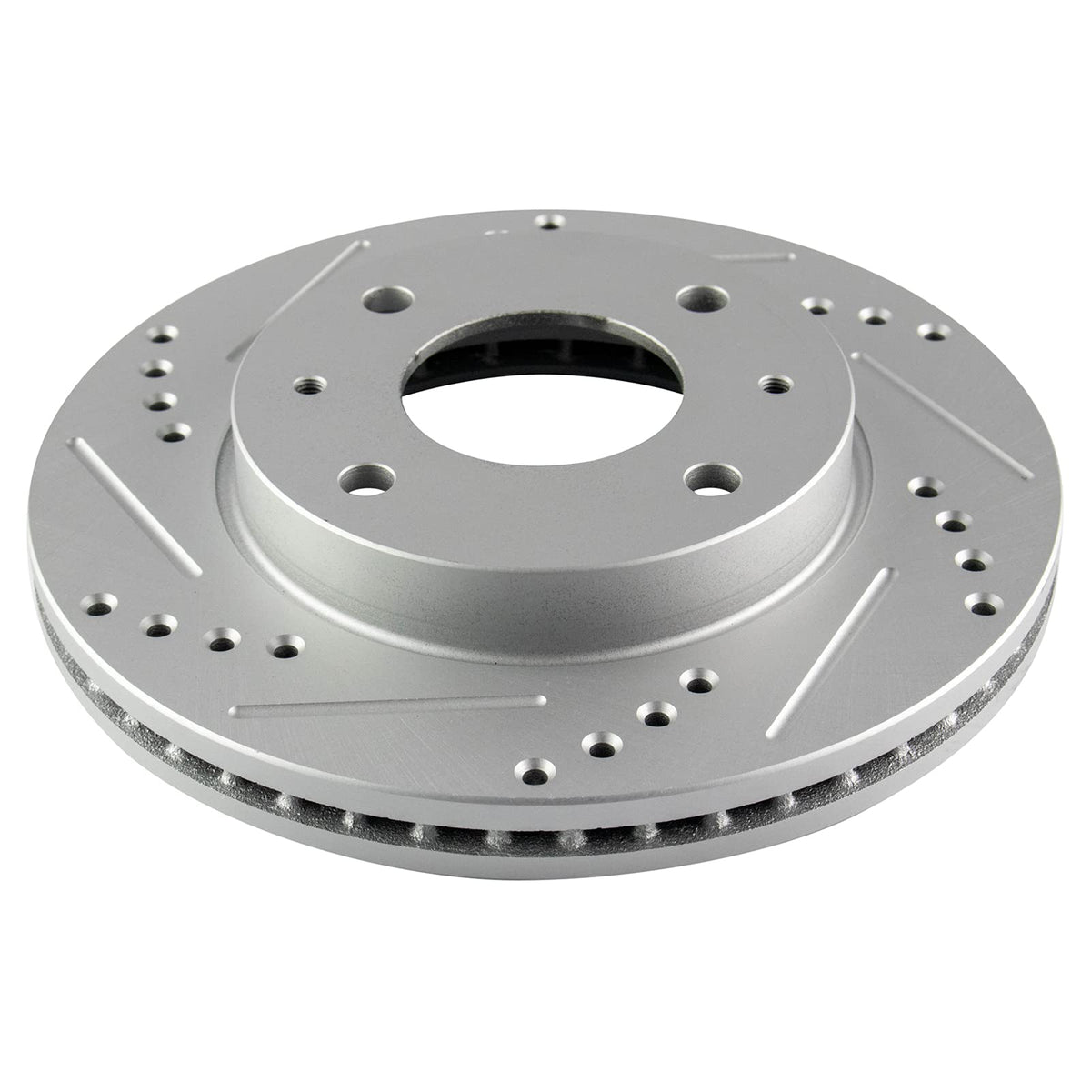 Trq Performance Brake Rotor Drilled Slotted Front Coated Pair Compatible With Hyundai