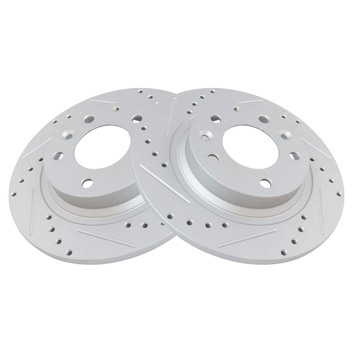 Trq Rear Performance Brake Rotor Drilled Slotted Pair Set For 2003-2013 Mazda 6/2006-2012 Fusion / 2006-2011 Milan / 2007-2012 M