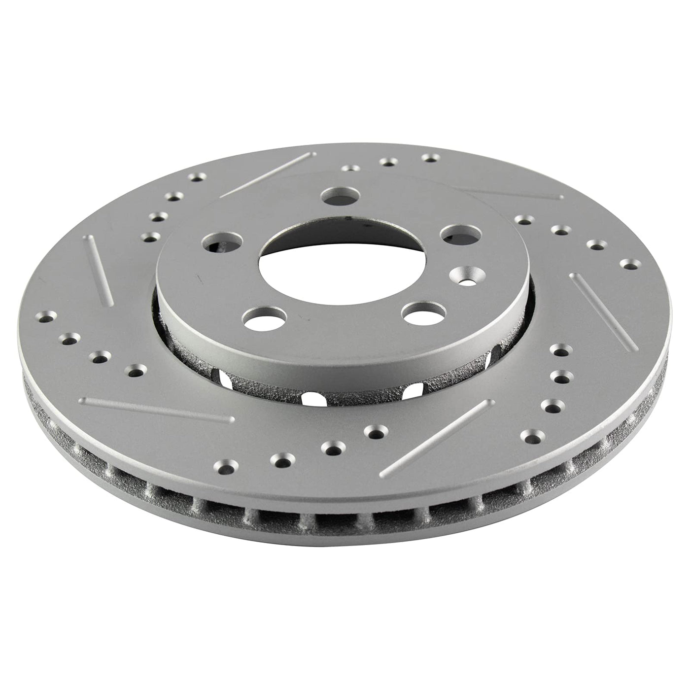 Trq Rear Performance Brake Rotors Set Premium G-Coated Cross Drilled & Slotted Compatible With 2000-2006 Audi Tt Quattro 2002-20