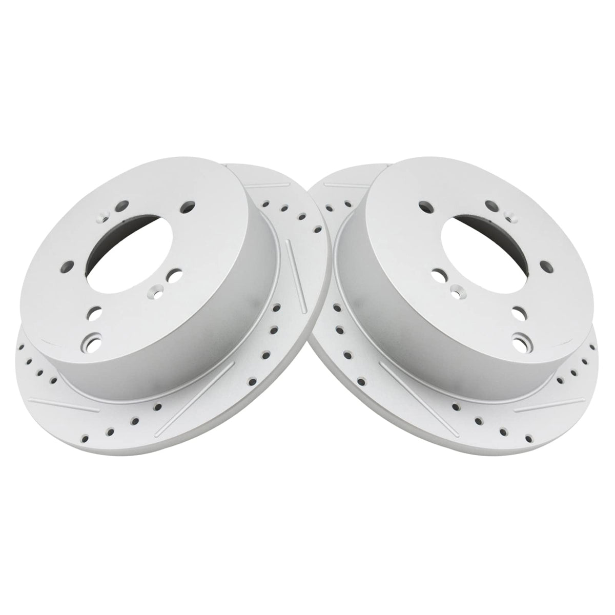 Trq Rear Performance Brake Rotors Set Premium G-Coated Cross Drilled & Slotted Compatible With 2001-2006 Hyundai Santa Fe 2009-2