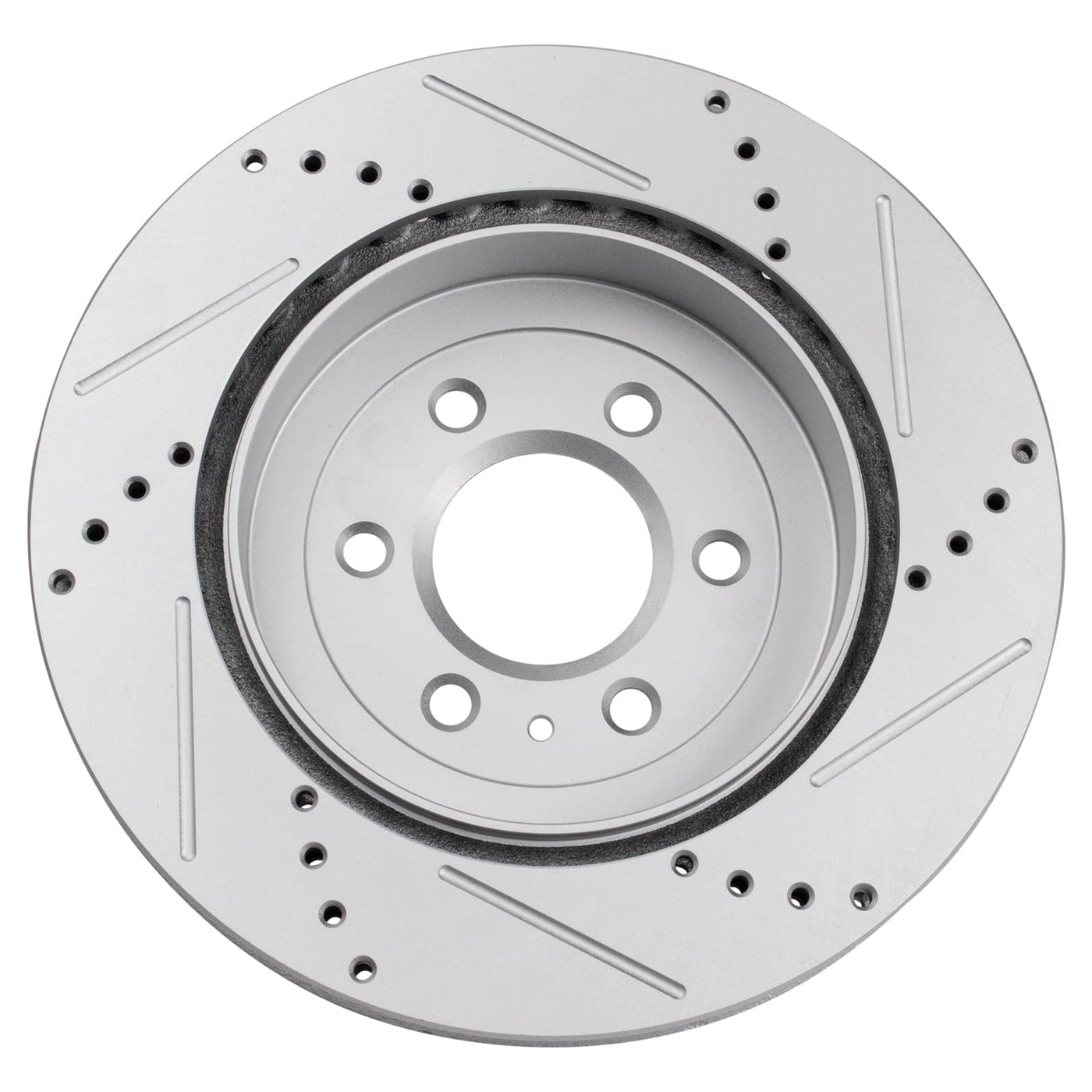 Trq Rear Performance Brake Rotors Set Premium G-Coated Cross Drilled & Slotted Compatible With 2004-2009 Cadillac Srx