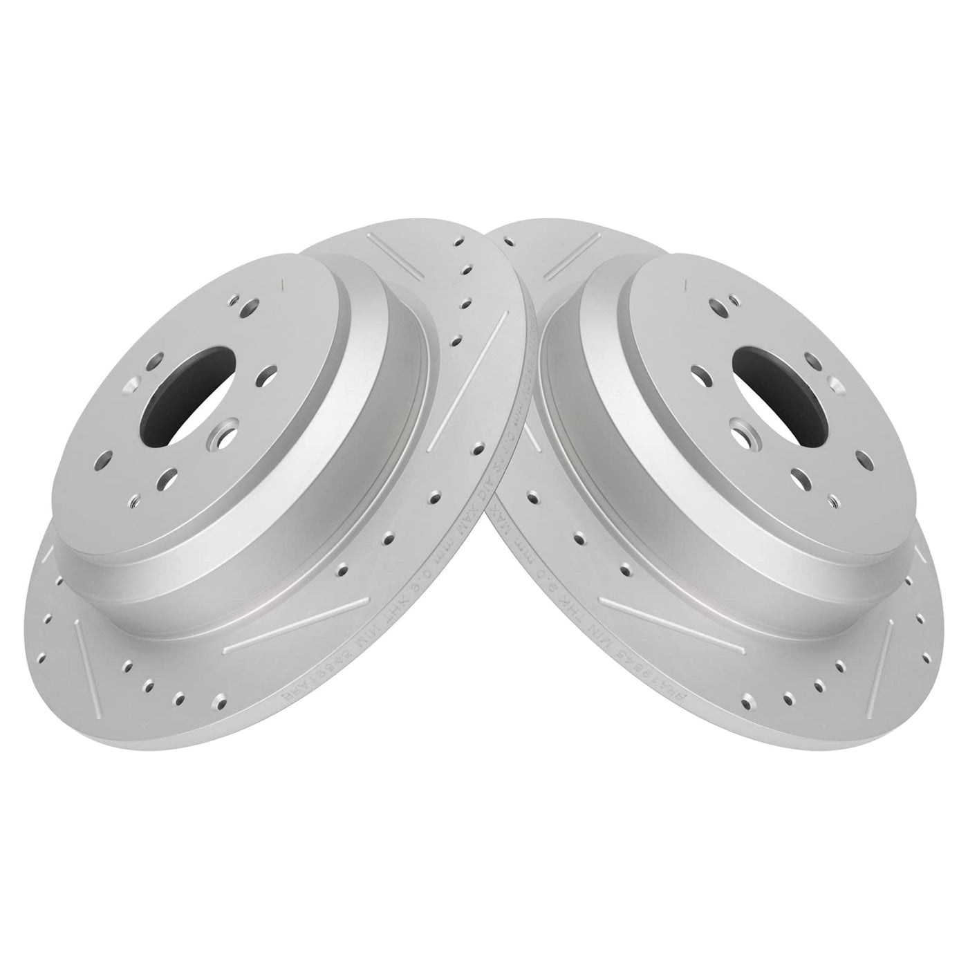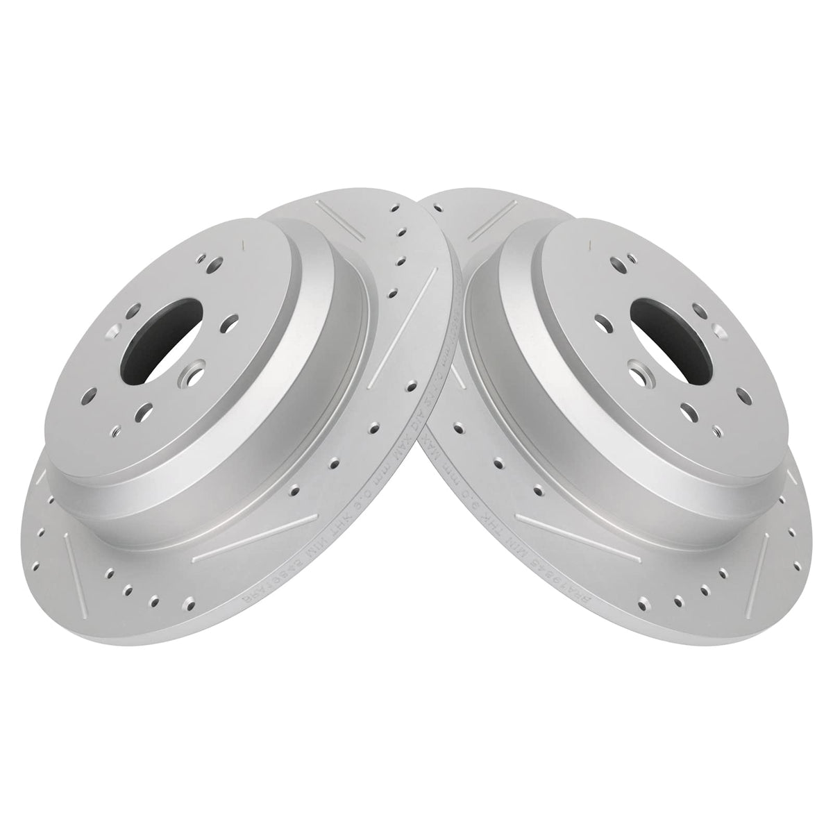 Trq Rear Performance Brake Rotors Set Premium G-Coated Cross Drilled & Slotted Compatible With 2014-2016 Acura Mdx