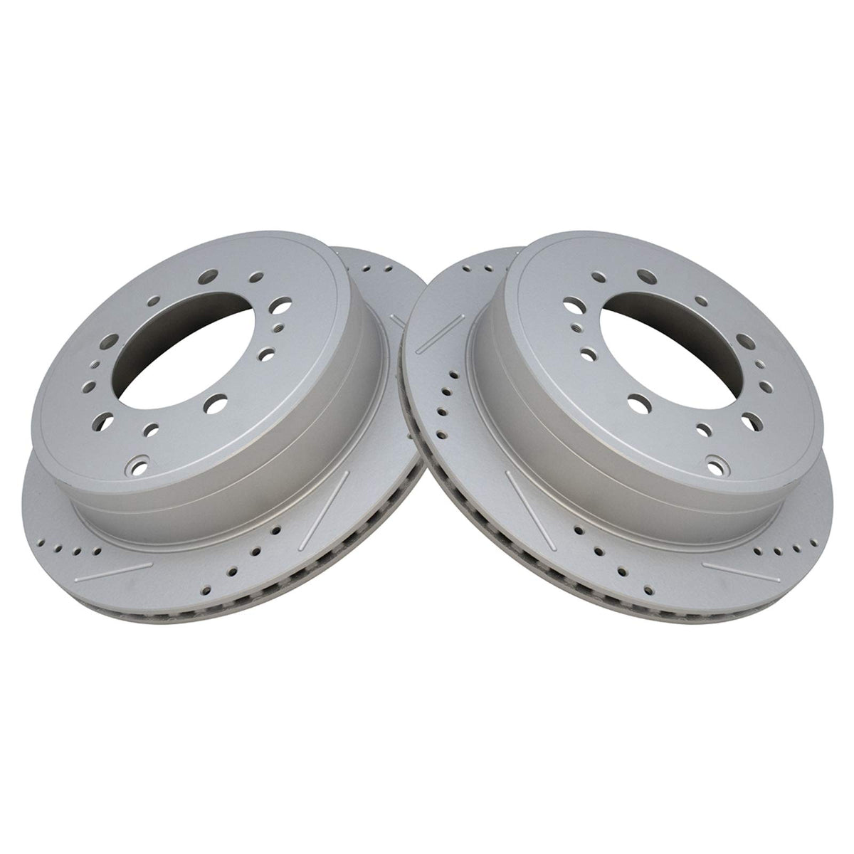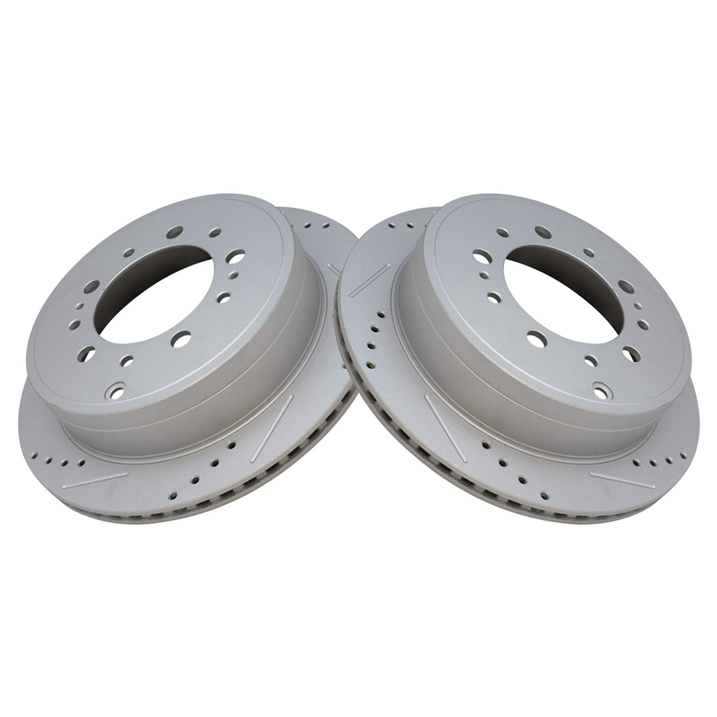 Trq Rear Performance Brake Rotors Set Vented Premium G-Coated Cross Drilled & Slotted Compatible With 2008-2021 Lexus Lx570 Toyo