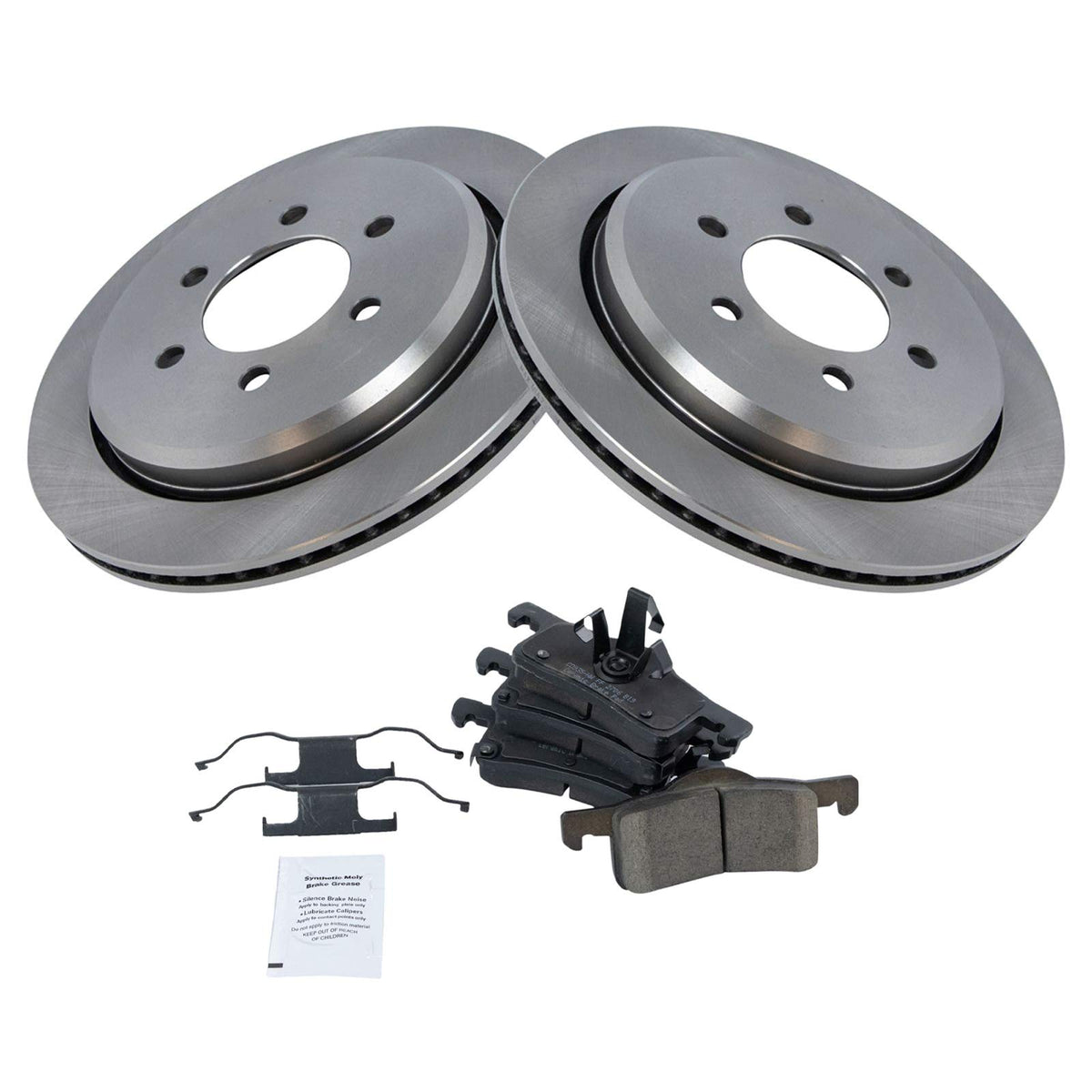 Ceramic Brake Pad & Rotor KitKit Includes(1) Rear Ceramic Brake Pad Set(2) Rear Brake RotorsFitmentCompatible with: 2003-06 Ford Expedition RearCompatible with: 2003-06 Lincoln Navigator RearProduct AttributesRear Brake Rotor Diameter: 13.50 in. (343mm)Wheel Lug Count: 6 LugBrake Pad Friction Material: CeramicBrake Pad Bonding Type: Premium PosiRear Brake Rotor Venting Type: VentedProduct Features Positive Molded - Less dust resulting in clean wheels G3000 Casting Alloy - Reduced noise and improved wear resistance Application Specific Design - Extended service life, no modificationsItem DetailsTRQ brake kits are designed to restore your brake system to like-new performance. TRQ brake pads are positive molded, thermal scorched, chamfered, and utilize a multi-layer shim for enhanced performance and service life. TRQ rotors have a non-directional finish that reduces the break-in period for new rotors as well as reducing vibrations throughout the rotors lifecycle. All products are fit and road-tested in our Massachusetts R&D facility to ensure we deliver on our promise of Trusted Reliable Quality.Reference NumbersAimco: 54100Bendix: PRT5414DuraGo: BR54100Ford: 2L1Z2200BA, 4L1Z2200ABHollander: 533-02434Lincoln: 4L1Z2200ABRaybestos Brakes: 680106, 680106FZN, 680106P, 680106PER, 680106R, EHT935, MGD935C, SGD935CWagner: BD125781