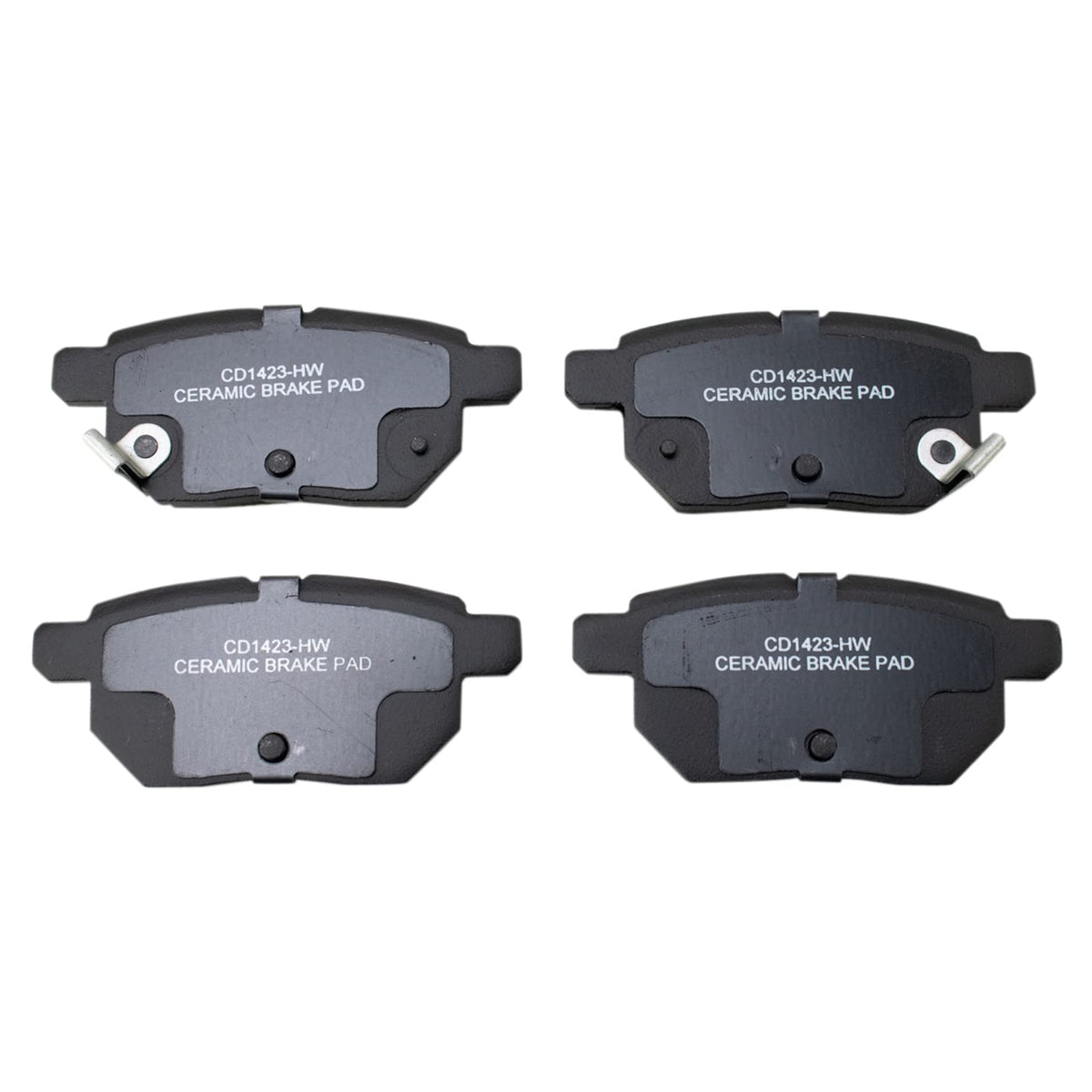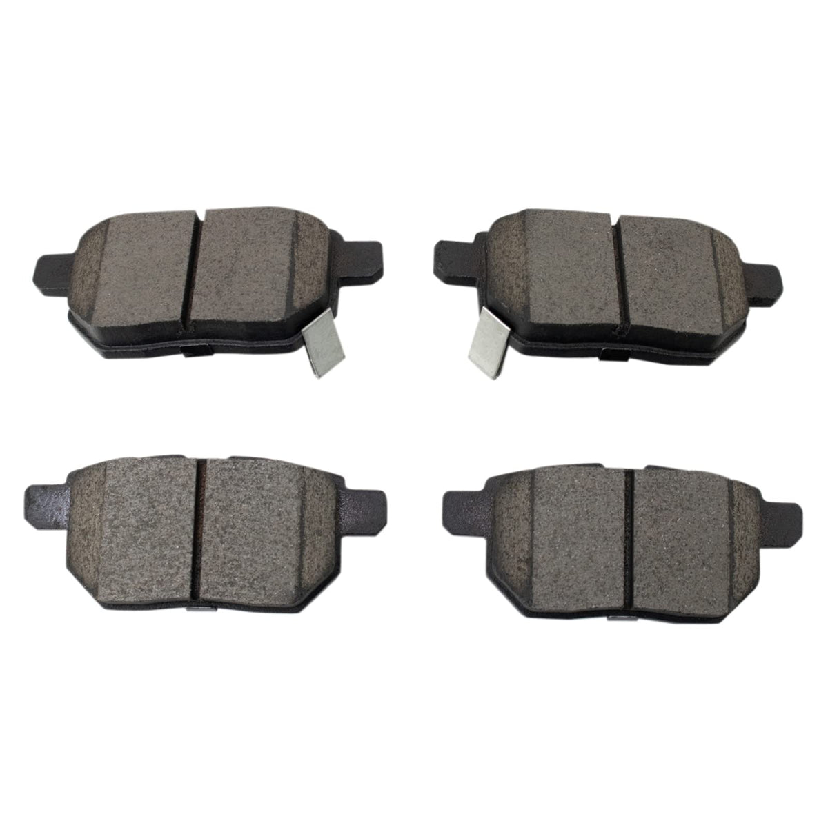 Ceramic Brake PadsFitmentCompatible with: 2013-18 Toyota Corolla RearCompatible with: 2010-20 Toyota Prius RearCompatible with: 2009-10 Toyota Corolla XRS RearCompatible with: 2008-15 Scion xB RearCompatible with: 2011-16 Scion tC RearCompatible with: 2011-17 Lexus CT200h RearCompatible with: 2017-20 Toyota Prius Prime RearCompatible with: 2009-13 Toyota Matrix Front Wheel Drive RearCompatible with: 2014-18 Toyota Yaris RearCompatible with: 2009-10 Pontiac Vibe L4 1.8L RearCompatible with: 2012-13 Toyota Yaris SE RearCompatible with: 2012-15 Toyota Prius Plug-In RearCompatible with: 2017-18 Toyota Corolla iM RearCompatible with: 2019-20 Toyota Prius AWD-e RearCompatible with: 2016 Scion iM RearProduct AttributesOuter Pad Friction Material Thickness: 0.55 inInner Pad Friction Material Thickness: 0.55 inInner Pad Overall Thickness: 0.55 inOuter Pad Overall Thickness: 0.55 inOuter Pad Width: 1.69 inInner Pad Width: 1.69 inInner Pad Friction Material Thickness: 14 mmOuter Pad Overall Thickness: 14 mmInner Pad Overall Thickness: 14 mmOuter Pad Friction Material Thickness: 14 mmOuter Pad Height: 3.90 inInner Pad Height: 3.90 inPad Quantity: 4Inner Pad Width: 43 mmOuter Pad Width: 43 mmOuter Pad Height: 99 mmInner Pad Height: 99 mmPad Shim Color: BlackBacking Plate Color: BlackFriction Material Attachment: BondedFriction Material Composition: CeramicPad Wear Sensor Type: MechanicalBetter Brakes Law SAE Environmental Compliance Level: NFriction Surface Scorched: NoBolts Included: NoECE-R90 Certified: NoMounting Hardware Included: NoPad Shim Material: R-S-RGrade Type: RegularBacking Material: SteelPad Shims Included: YesWear Indicator Attached: YesSlotted: YesPad Wear Sensor Included: YesBrake Lubricant Included: YesAbutment Clips Included: YesChamfered Edges: YesPrepared For Pad Wear Sensor: YesBrake Pad Friction Material: CeramicIncludes: Contact Point GreaseIncludes: HardwareBrake Pad Bonding Type: Premium PosiProduct Features Positive Molded: Less dust resulting in clean wheels Thermal Scorched: Improved stopping performance Application Specific Design: Extended service life, no modifications Hardware and grease included for a complete repair Environmentally Compliant: Meets all Better Brake Law standardsItem DetailsTRQ brake pads are manufactured using premium raw materials and design standards to restore original performance. TRQ brake pads are positive molded and utilize a multi-layer shim for enhanced performance and service life. TRQs combination of materials and design ensures a low dust and low noise braking experience. TRQ recommends replacing your brake rotors when you replace your brake pads to ensure even wear of components and improved braking comfort. All products are fit and road-tested in our Massachusetts R&D facility to ensure we deliver on our promise of Trusted Reliable Quality.Reference NumbersLexus: 446647030, 446676011, 446676012Scion: 446676012Toyota: 446647020, 446647030, 446647060, 446647061, 446647100, 446676012