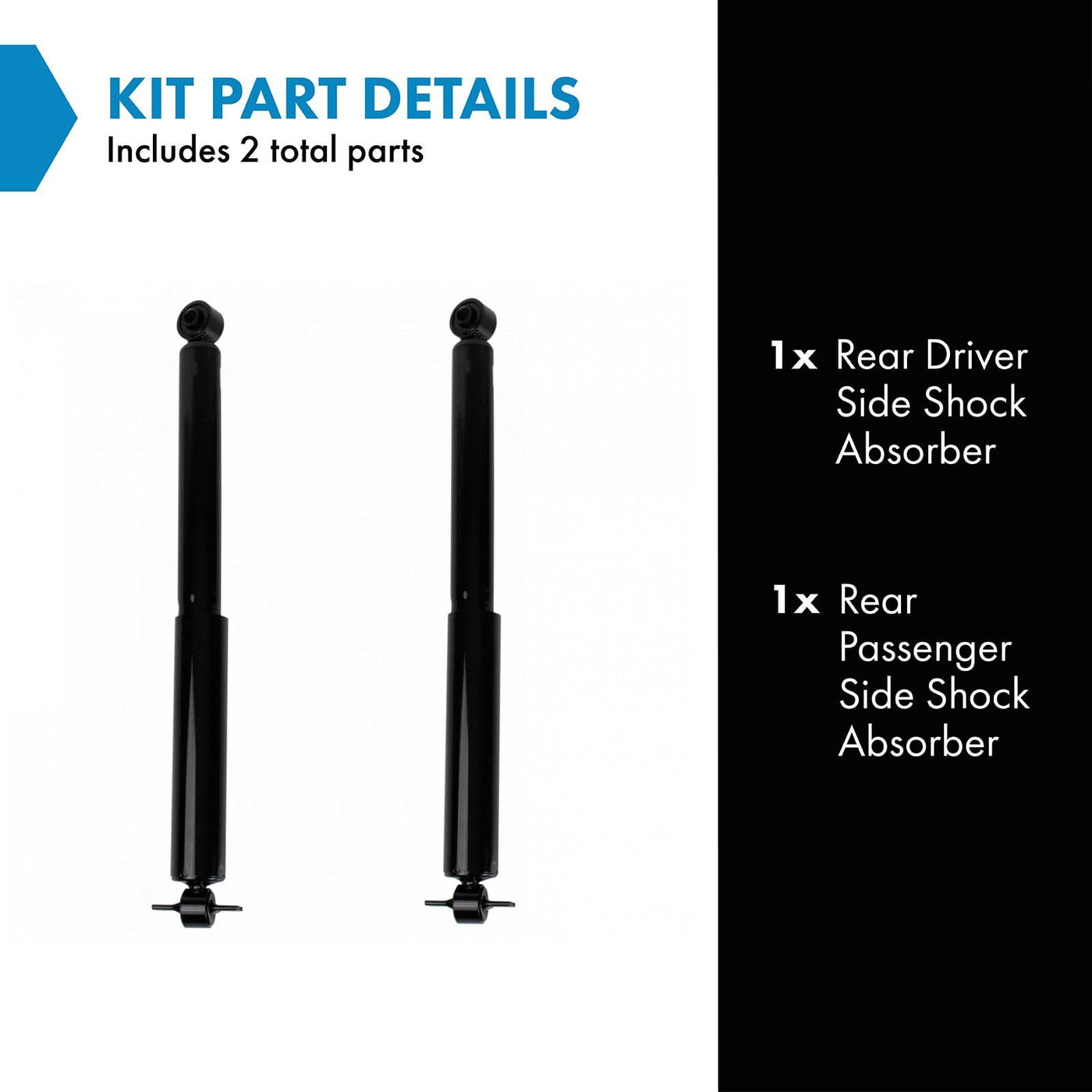 2 Piece Shock Absorber SetKit Includes(1) Rear Driver Side Shock Absorber(1) Rear Passenger Side Shock AbsorberFitmentCompatible with: 2006-18 Chevrolet Express 3500 Van Extended Cargo Van Rear Driver & Passenger SideCompatible with: 2006-18 Chevrolet Express 3500 Van Cutaway Van without Lowered Rear Leaf Suspension Rear Driver & Passenger SideCompatible with: 2006-18 Chevrolet Express 3500 Van Standard Cargo Van Rear Driver & Passenger SideCompatible with: 2006-15 Chevrolet Express 3500 Van Standard Passenger Van Rear Driver & Passenger SideCompatible with: 2006-15 Chevrolet Express 3500 Van Extended Passenger Van Rear Driver & Passenger SideCompatible with: 2008-15 Chevrolet Express 2500 Van Rear Driver & Passenger SideCompatible with: 2003-07 Chevrolet Express 2500 Van excluding 7300LB GVW Rear Driver & Passenger SideCompatible with: 2006-20 GMC Savana 3500 Van Extended Cargo Van Rear Driver & Passenger SideCompatible with: 2006-20 GMC Savana 3500 Van Standard Cargo Van Rear Driver & Passenger SideCompatible with: 2017-19 Chevrolet Express 2500 Van LS L4 2.8L Rear Driver & Passenger SideCompatible with: 2017-19 Chevrolet Express 2500 Van LT L4 2.8L Rear Driver & Passenger SideCompatible with: 2017-19 Chevrolet Express 2500 Van Base Model L4 2.8L Rear Driver & Passenger SideCompatible with: 2017-19 Chevrolet Express 2500 Van Base Model V8 6.0L Rear Driver & Passenger SideCompatible with: 2006-18 GMC Savana 3500 Van Cutaway Van without Lowered Rear Leaf Suspension Rear Driver & Passenger SideCompatible with: 2006-15 GMC Savana 3500 Van Extended Passenger Van Rear Driver & Passenger SideCompatible with: 2006-15 GMC Savana 3500 Van Standard Passenger Van Rear Driver & Passenger SideCompatible with: 2018-19 Chevrolet Express 2500 Van Base Model V6 4.3L Rear Driver & Passenger SideCompatible with: 2008-15 GMC Savana 2500 Van Rear Driver & Passenger SideCompatible with: 2017 Chevrolet Express 2500 Van Base Model V8 4.8L Rear Driver & Passenger SideCompatible with: 2020 Chevrolet Express 2500 Van Base Model Rear Driver & Passenger SideCompatible with: 2003-07 GMC Savana 2500 Van excluding 7300LB GVW Rear Driver & Passenger SideCompatible with: 2019 Chevrolet Express 3500 Van Base Model Standard Cargo Van Rear Driver & Passenger SideCompatible with: 2019 Chevrolet Express 3500 Van Base Model Extended Cargo Van Rear Driver & Passenger SideCompatible with: 2016 Chevrolet Express 2500 Van Base Model Rear Driver & Passenger SideCompatible with: 2017-18 GMC Savana 2500 Van Base Model V8 6.0L Rear Driver & Passenger SideCompatible with: 2017-18 GMC Savana 2500 Van LT L4 2.8L Rear Driver & Passenger SideCompatible with: 2017-18 GMC Savana 2500 Van LS L4 2.8L Rear Driver & Passenger SideCompatible with: 2017-18 GMC Savana 2500 Van Base Model L4 2.8L Rear Driver & Passenger SideCompatible with: 2020 Chevrolet Express 3500 Van Standard Cargo Van Rear Driver & Passenger SideCompatible with: 2020 Chevrolet Express 3500 Van Extended Cargo Van Rear Driver & Passenger SideCompatible with: 2017 GMC Savana 2500 Van Base Model V8 4.8L Rear Driver & Passenger SideCompatible with: 2019-20 GMC Savana 2500 Van Base Model Rear Driver & Passenger SideCompatible with: 2016 GMC Savana 2500 Van Base Model Rear Driver & Passenger SideCompatible with: 2018 GMC Savana 2500 Van Base Model V6 4.3L Rear Driver & Passenger SideCompatible with: 2009-17 Chevrolet Express 4500 Rear Driver & Passenger SideCompatible with: 2009-16 GMC Savana 4500 Rear Driver & Passenger SideProduct AttributesQuantity: 2 PieceReference NumbersAutopart International: 2701-424145, KYB349009Gabriel: 61687, G61897, G61919, G63897KYB: 349009, 554348Monroe Shocks & Struts: 32265OSC: S349009