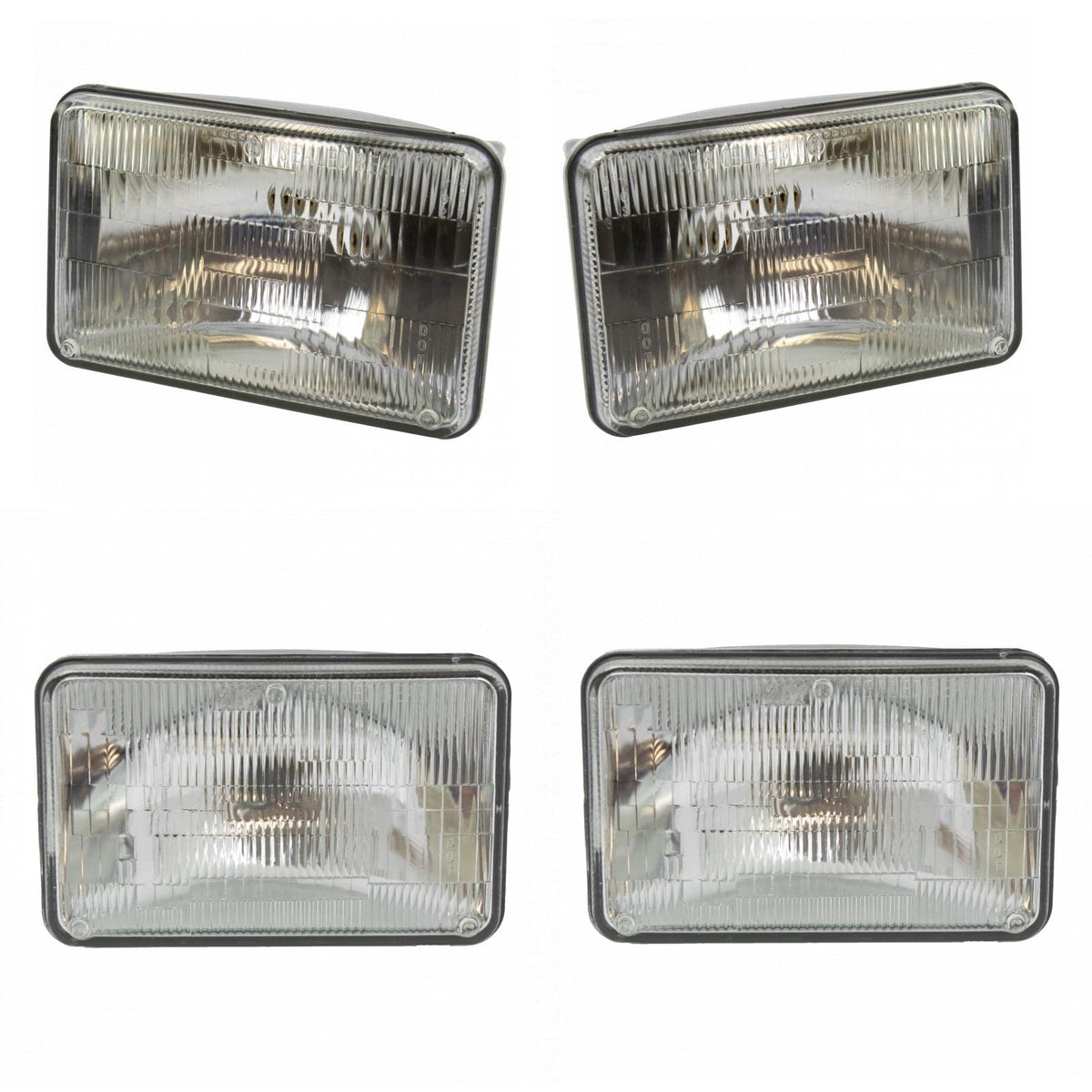 Trq Rectangle Sealed Beam High & Low Beam Headlights 4 Piece Set Kit