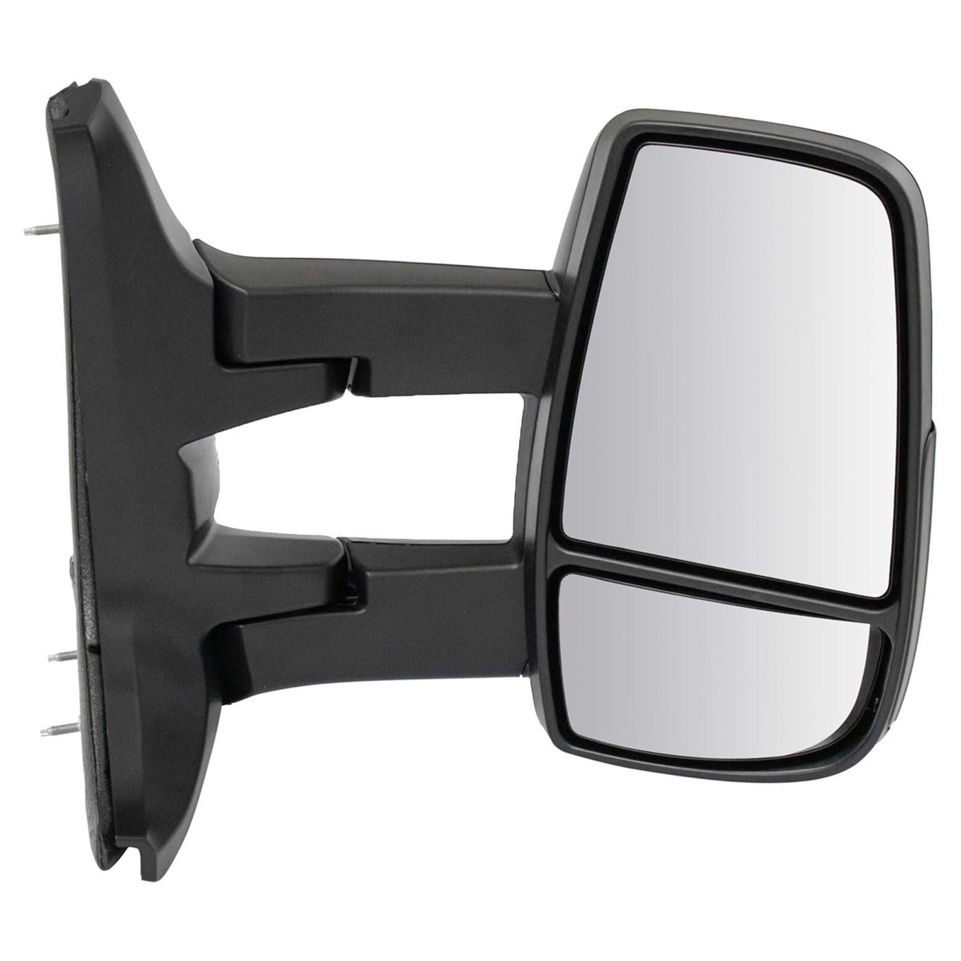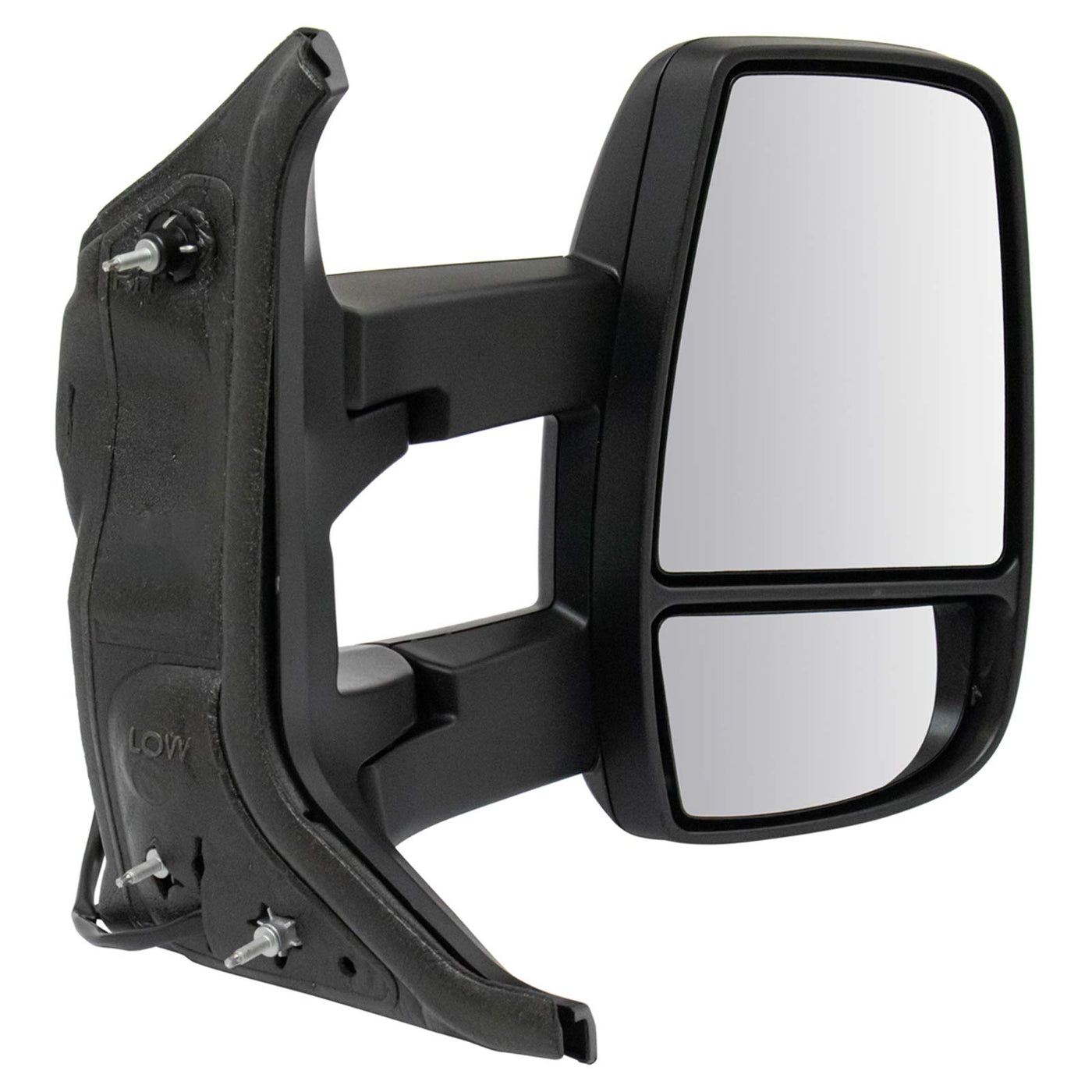 Power Textured Black Long Arm Design MirrorFitmentCompatible with: 2015-19 Ford Transit T250 with Low Roof Option Passenger SideCompatible with: 2015-19 Ford Transit T350 with Low Roof Option Passenger SideCompatible with: 2015-19 Ford Transit T150 with Low Roof Option Passenger SideCompatible with: 2015-19 Ford Transit T350 HD with Low Roof Option Passenger SideProduct AttributesWiring Harness Length: 18.11 inMounting Hole Quantity: 3Connector Terminal Quantity: 3Housing Color: BlackCover Color: BlackGlass Color: ClearAdjustment Type: ElectricGlass Surface: FlatFold Away Mechanism: ManualManual Remote Control: NoConvex Shaped Glass: NoHousing Turn Signal Indicator: NoIntegrated Puddle Light: NoAutomatic Dimming Included: NoMounting Hardware Included: NoBlind Spot Indicator: NoAspherical Glass: NoSide View Camera Included: NoHeated: NoLane Departure Warning System: NoReverse Gear Tilt-Down: NoUtility Spotlight: NoTemperature Sensor Included: NoMirror Turn Signal Indicator: NoMemory Setting: NoMaterial: PlasticCover Finish: TexturedHousing Finish: TexturedBlind Spot Mirror Included: YesMirror Type: Long Arm DesignMirror Color / Finish: Textured BlackProduct Features Direct Bolt-on Replacement: No modifications or special tools required Complete Assembly: includes same mirror glass, housing, bracket and technology as the original unit DOT Certified: Built to the highest quality standards FMVSS-111 Compliant: Validated to be a dealership alternativeItem DetailsTRQ side mirrors and mirror components are designed to match the function, fixture, and performance of the original version for easy installation. TRQ mirrors are DOT certified, comply with all federal safety standards, and are independently lab tested to ensure our products comply with all government regulations. All products are fit and road-tested in our Massachusetts R&D facility to ensure we deliver on our promise of Trusted Reliable Quality.Reference NumbersFord: EK4Z 17682 HA, EK4Z 17682 HB, EK4Z-17682-HA, EK4Z17682HA, EK4Z17682HBPartslink Numbering System: FO1321626