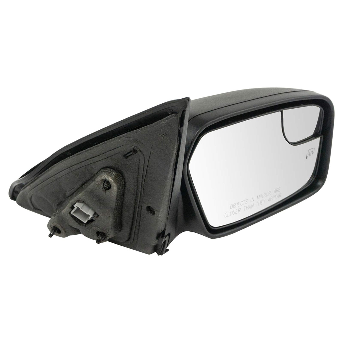 Power Heated Textured Black MirrorFitmentCompatible with: 2011-12 Ford Fusion Passenger SideCompatible with: 2011 Mercury Milan Passenger SideProduct AttributesMounting Hole Quantity: 3Connector Terminal Quantity: 6Housing Color: BlackCover Color: BlackGlass Color: ClearGlass Surface: CurvedAdjustment Type: ElectricAutomatic Dimming Included: NoMounting Hardware Included: NoHousing Turn Signal Indicator: NoBlind Spot Indicator: NoAspherical Glass: NoManual Remote Control: NoLane Departure Warning System: NoReverse Gear Tilt-Down: NoUtility Spotlight: NoTemperature Sensor Included: NoMirror Turn Signal Indicator: NoMemory Setting: NoSide View Camera Included: NoFold Away Mechanism: Non-FoldMaterial: PlasticHousing Finish: TexturedCover Finish: TexturedConvex Shaped Glass: YesBlind Spot Mirror Included: YesHeated: YesIntegrated Puddle Light: YesMirror Color / Finish: Textured BlackProduct Features Direct Bolt-on Replacement: No modifications or special tools required Complete Assembly: includes same mirror glass, housing, bracket and technology as the original unit DOT Certified: Built to the highest quality standards FMVSS-111 Compliant: Validated to be a dealership alternativeItem DetailsTRQ side mirrors and mirror components are designed to match the function, fixture, and performance of the original version for easy installation. TRQ mirrors are DOT certified, comply with all federal safety standards, and are independently lab tested to ensure our products comply with all government regulations. All products are fit and road-tested in our Massachusetts R&D facility to ensure we deliver on our promise of Trusted Reliable Quality.Reference NumbersDIY Solutions: MIR02763Ford: BE5Z 17682 BA, BE5Z17682BAMercury: BE5Z 17682 BA, BE5Z17682BAMotorcraft: 6E5Z17D742AAPartslink Numbering System: FO1321424