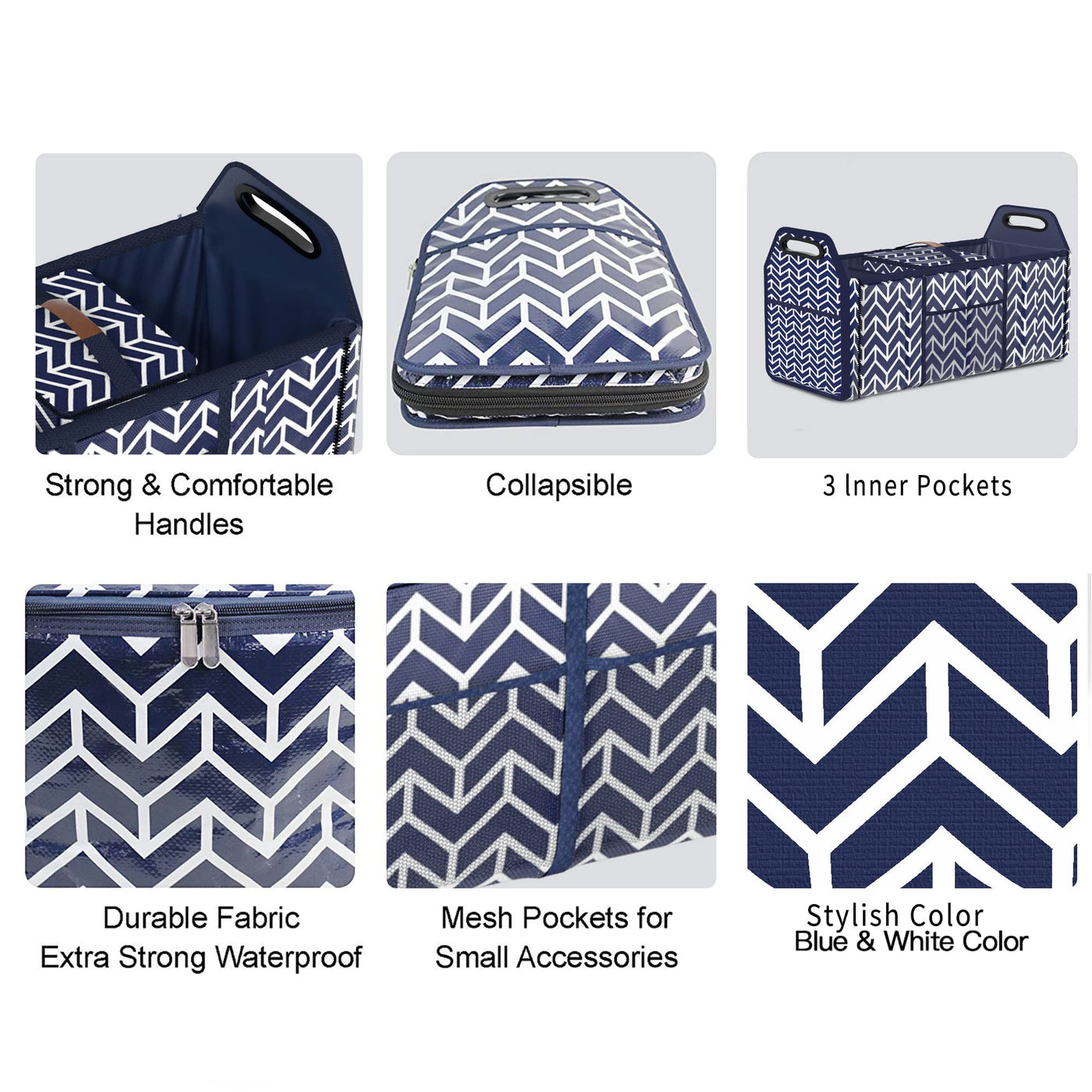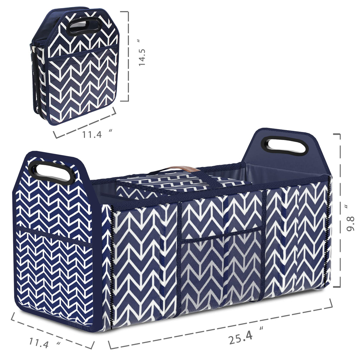 Practical Design For Storage: Size: 24.8 X 11.4 X 9.8 Inch With 3 Compartments.&Nbsp;Each Compartment Has Ample Storage Space, Both Can Be Folded To Smaller.&Nbsp; There Are Two Pockets In The Both Side, Two Mesh Pockets In The Front And Back.&Nbsp; Pockets Prevent Tiny Items From Sliding, Mesh Pockets Allow You To See What You Have Put In. Detachable Cooler Bag: The Included Cooler Bag Is Made Of 0.3 Inch Thick Foam Material With No Seams&Nbsp;(Size: 11.2 X 8.5 X 9.9 Inch For 15L Or 24 Can). You Can Put Ice Directly In, The Cooling Effect Can Last Up To 6 Hours.&Nbsp; Super Durability: The Trunk Organizer Still Keeps In Shape While Filled Up With Goods.&Nbsp; The Dividers Are Made Of Super Strong Polyester Which Wont Bend Or Collapse When Added Cargo, So It Can Last A Long Time With Repeated Use. Wide Application: Convenient Organization And Storage For Drinks, Food, Groceries, Small Electronics, Tools, Sporting Goods, Cleaning Supplies, Emergency Equipment And Small Household Items. It'S Also Very Portable That With Handles For You Easily To Take It Out For Picnic Or Camping.