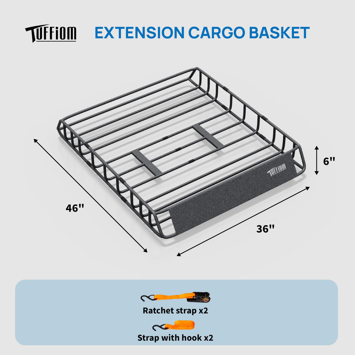 Tuffiom 46''X 36''X 6'' Universal Rooftop Cargo Carrier Basket, Heavy Duty Steel Roof Rack Basket W/4 Straps With Hook, Car Top