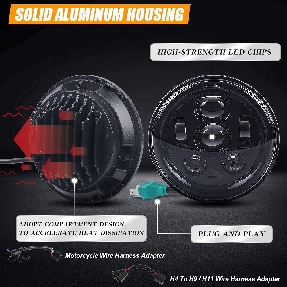 Tugwuetlwu 7 Inch Led Motorcycle Headlight Compatible With Harley Davidson Street Glide Road King Accessories Electra Glide Fat