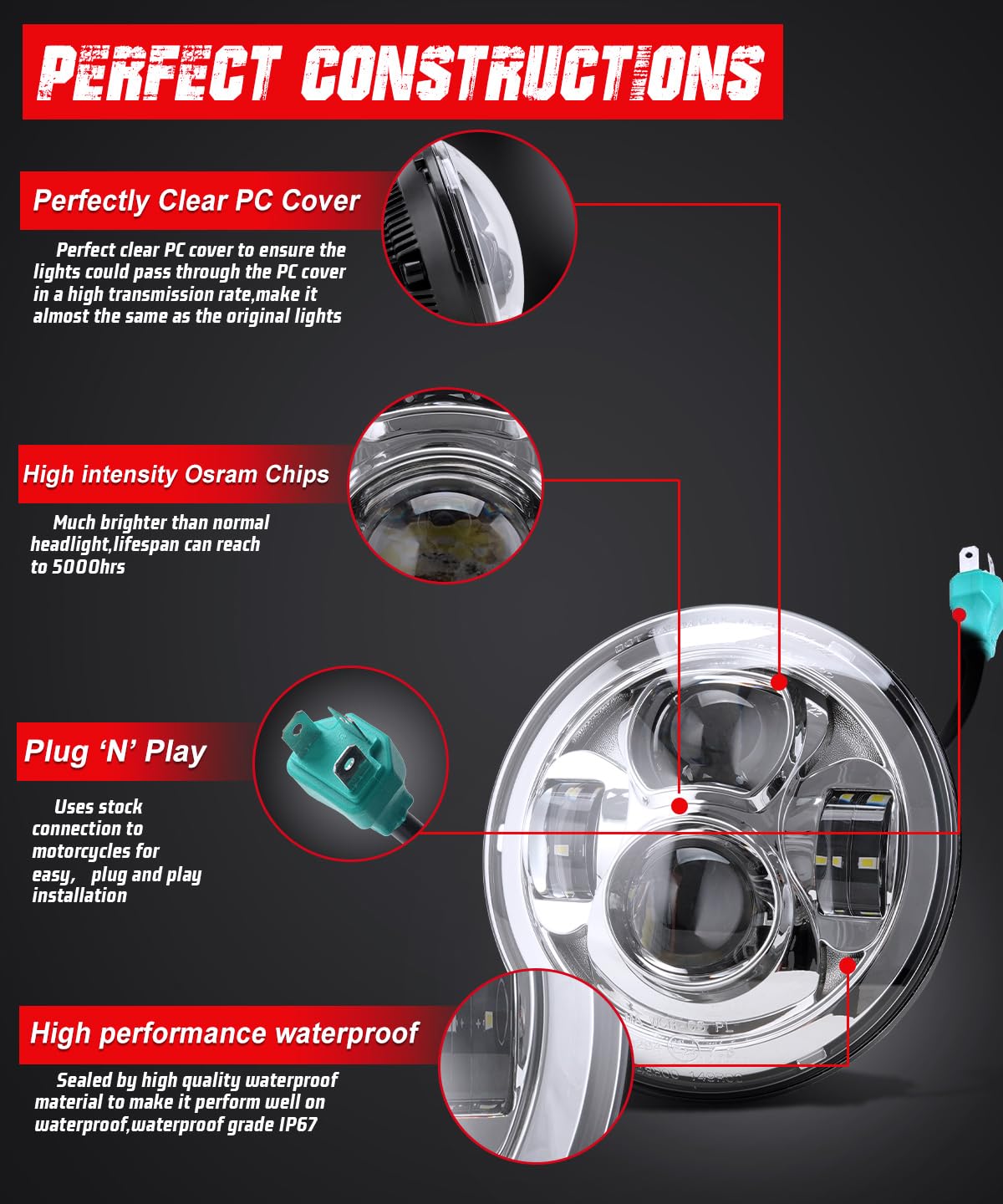Tugwuetlwu New 7'' Led Headlight 4.5'' Auxiliary Fog Lights Kit For Motorcycle Accessories Compatible With Harley Davidson Stree
