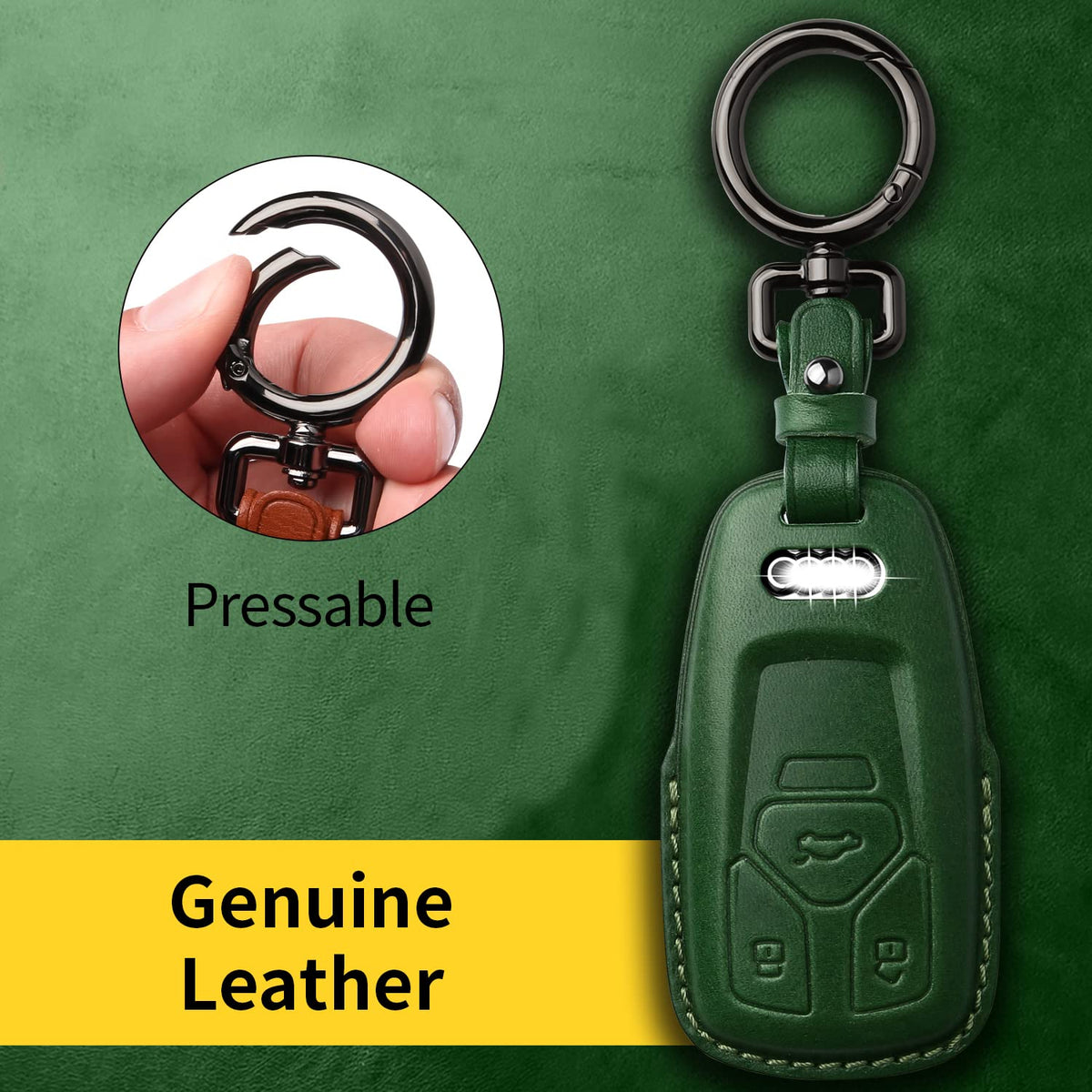 Tukellen For Audi Key Fob Cover Genuine Leather With Keychain,Leather Key Case Protector Compatible Audi A4 Q7 Q5 Tt A3 A6 Sq5 R