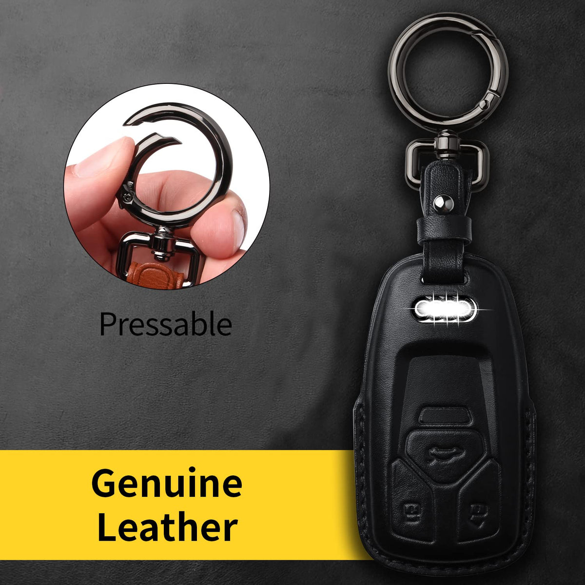 Tukellen For Audi Key Fob Cover Genuine Leather With Keychain,Leather Key Case Protector Compatible Audi A4 Q7 Q5 Tt A3 A6 Sq5 R8 S5 Smart Key-Black