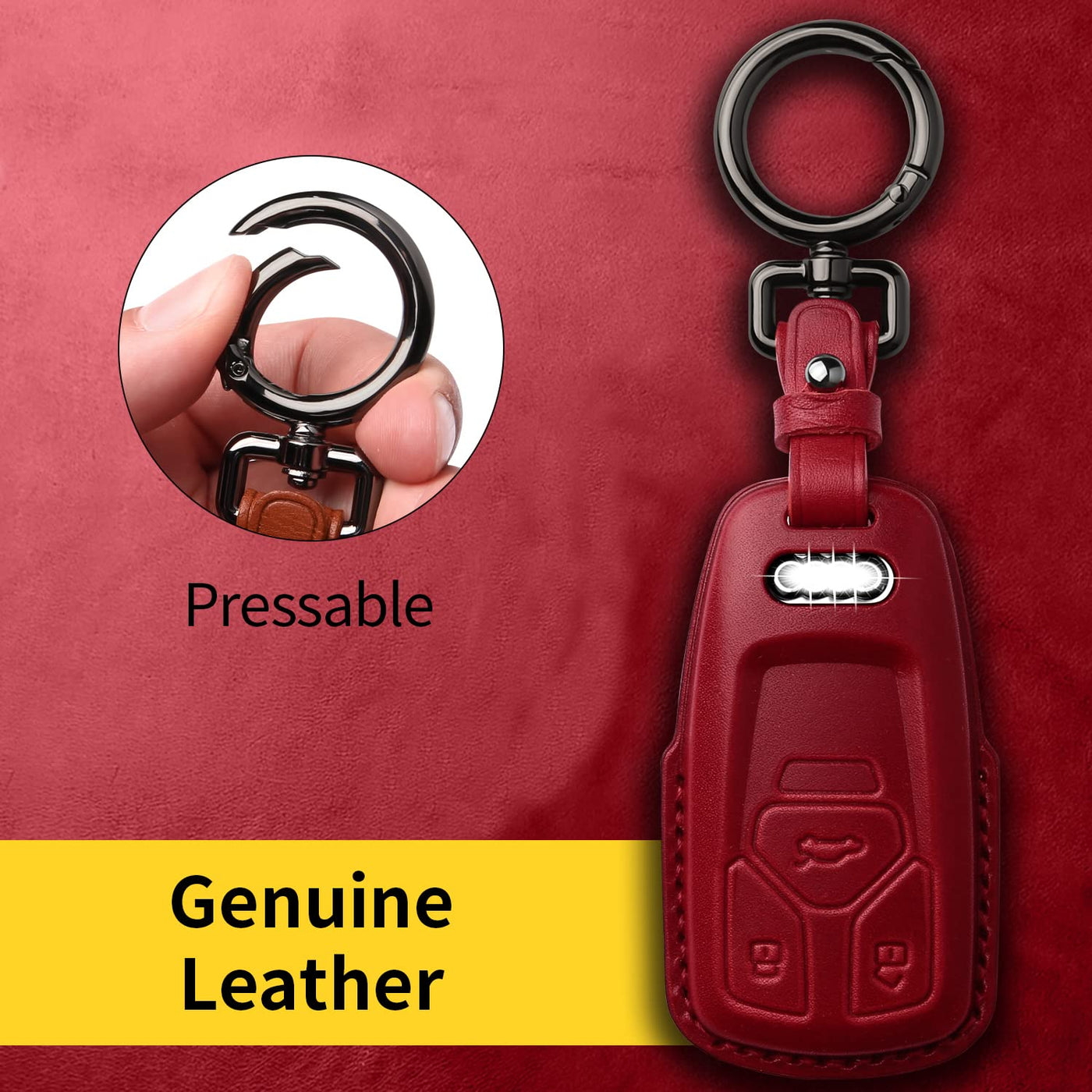 Tukellen For Audi Key Fob Cover Genuine Leather With Keychain,Leather Key Case Protector Compatible With Audi A4 Q7 Q5 Tt A3 A6 Sq5 R8 S5 Smart Key-Wine Red