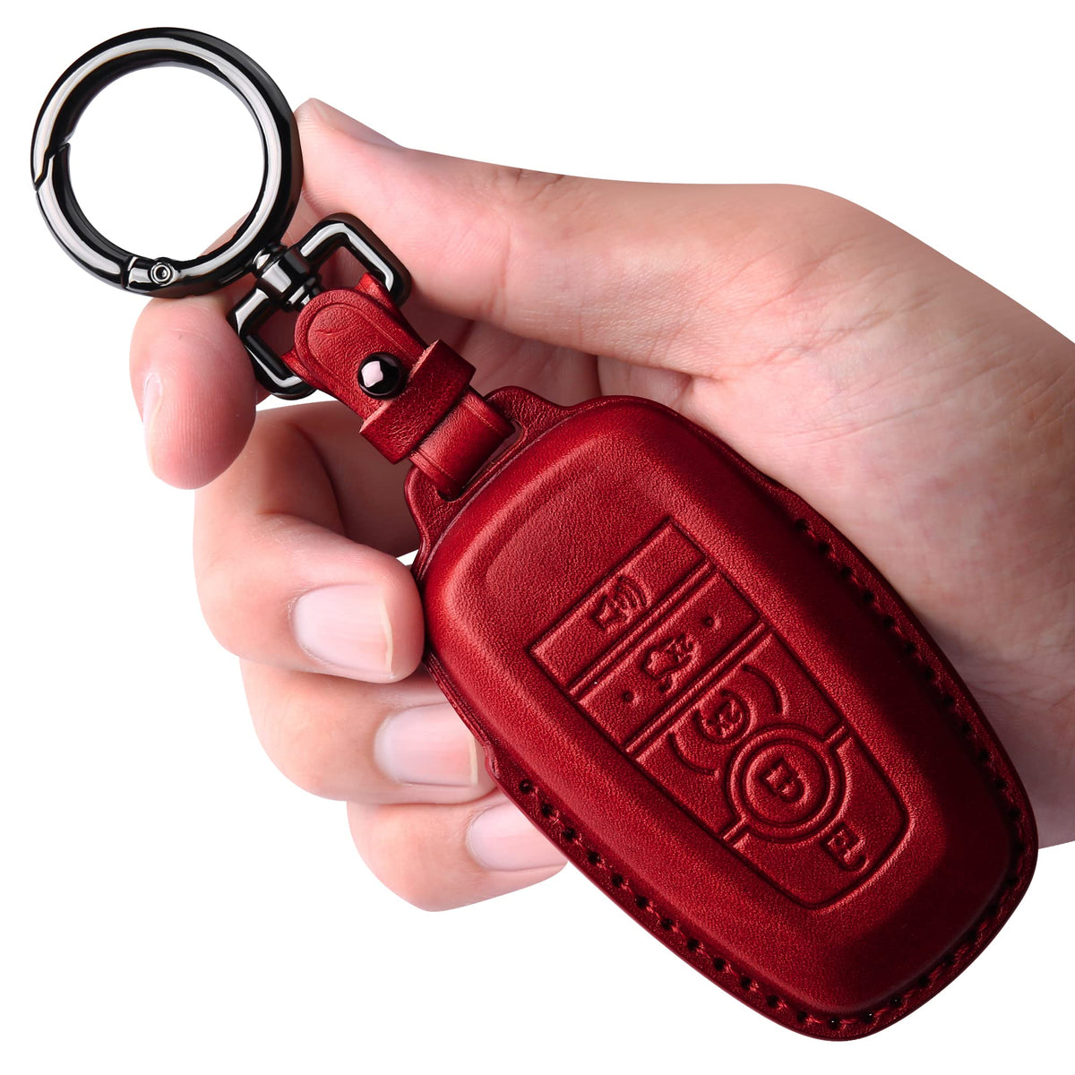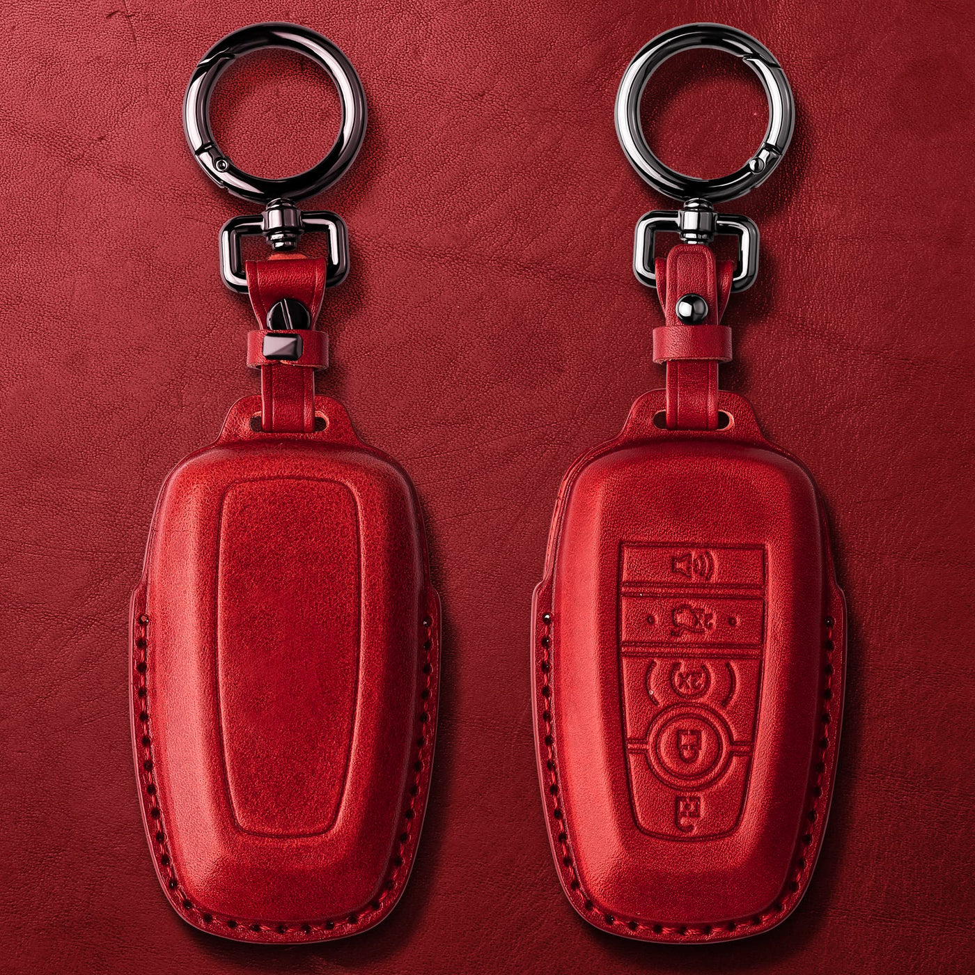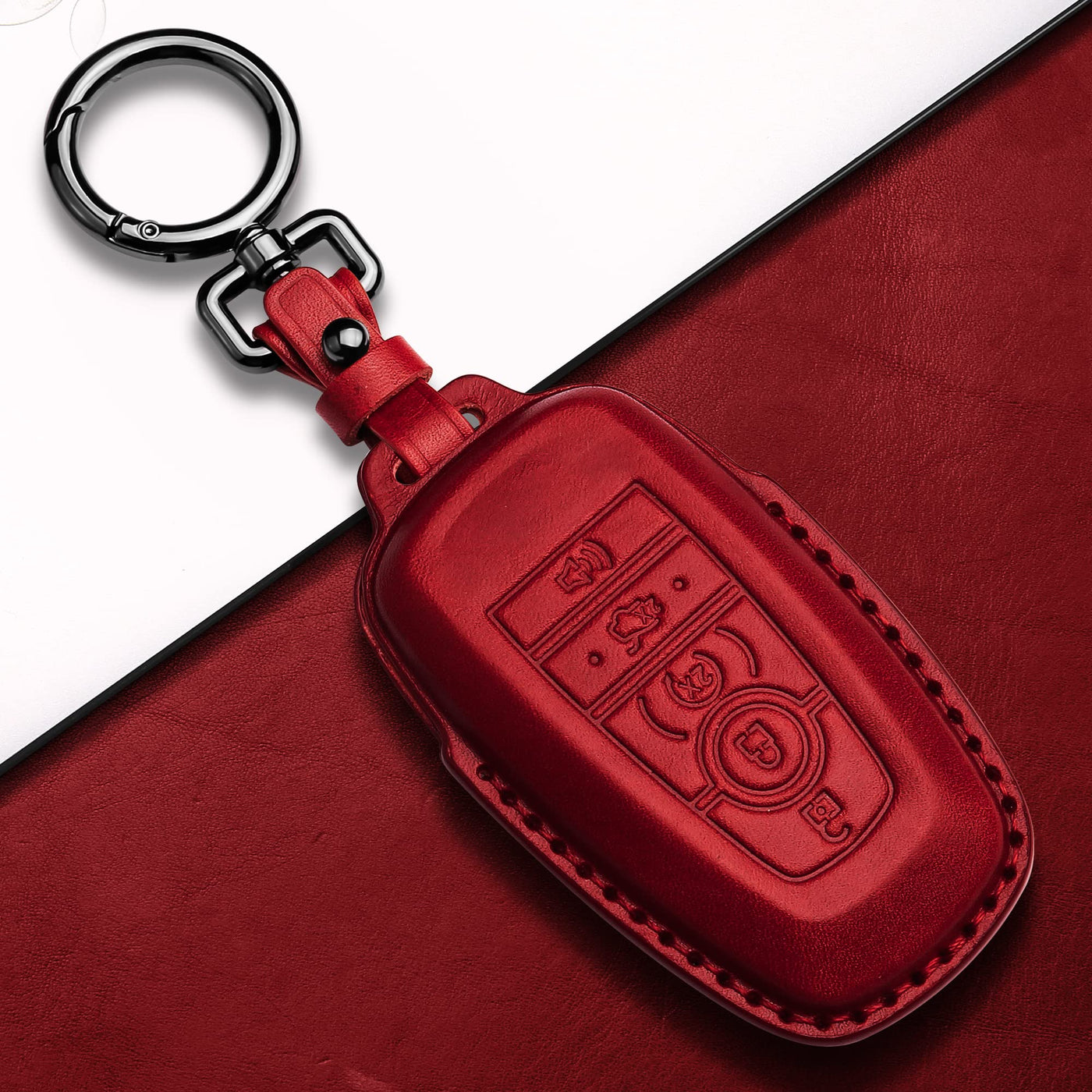 Tukellen For Ford Leather Key Fob Cover With Keychain Compatible With Ford Explorer Mustang Fusion Escape F150 F250 F350 F450 F550 Edge-Red