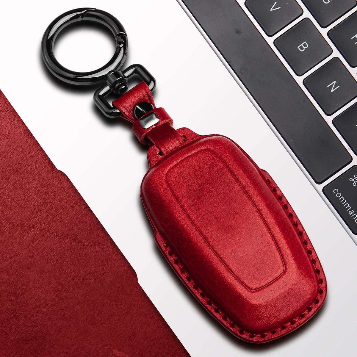 Q: How do I care for my leather key fob cover?A: To maintain the quality of your Tukellen Leather Key Fob Cover, avoid exposing it to excessive moisture and direct sunlight. You can clean it with a soft cloth and use leather conditioner occasionally to keep it looking new.