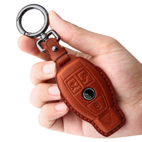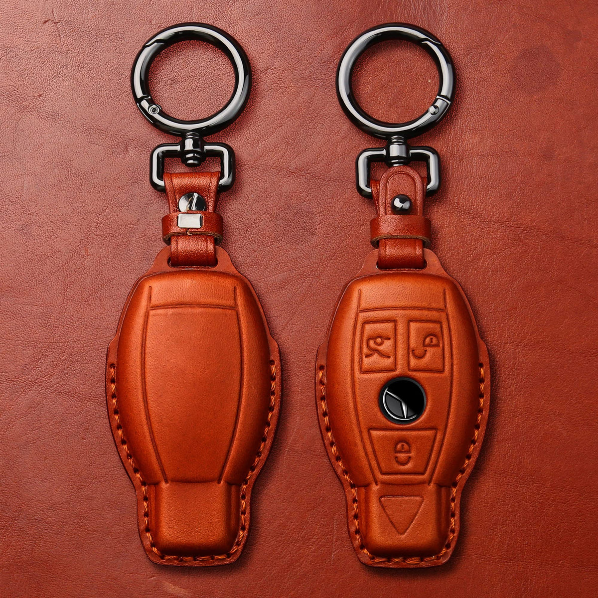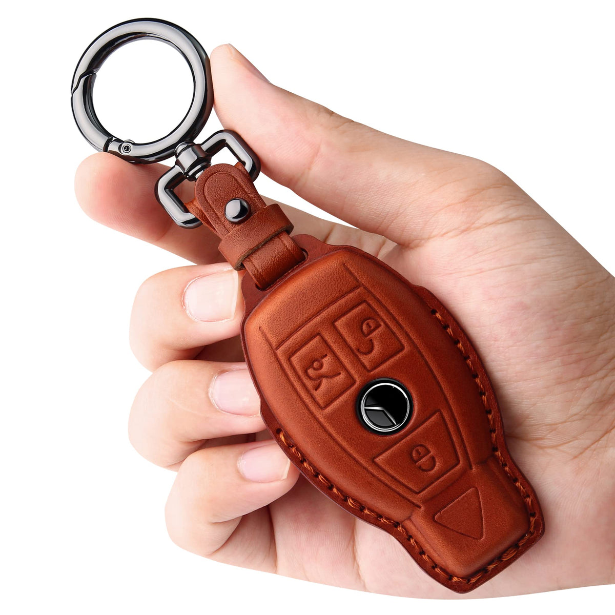 Tukellen For Mercedes Benz Key Fob Cover Genuine Leather With Keychain,Leather Key Case Protector Compatible C E M S Cls Clk Glk Glc G Amg Series Smart Remote Key,Brown