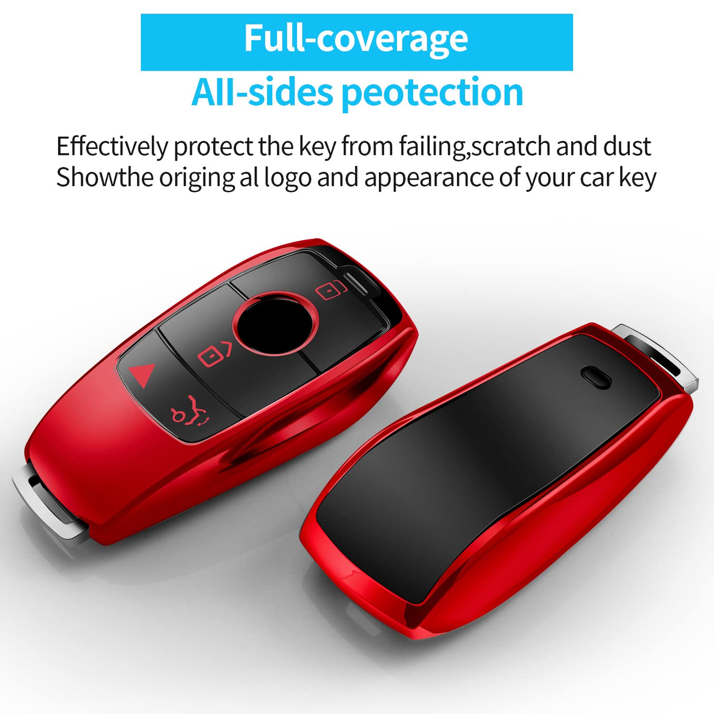 Tukellen For Mercedes Benz Key Fob Cover,Special Soft Tpu Key Case Protector Compatible With Mercedes Benz 2017-2021 E-Class 2018-2021 S-Class 2019-2021 A-Class C-Class G-Class-Red