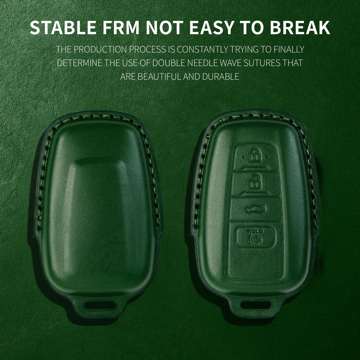 Q: What material is the Tukellen Key Fob Cover made of?A: The Tukellen Key Fob Cover is made from high-quality genuine leather, providing a stylish and durable design. This material is not only attractive but also healthy and safe for everyday use.
