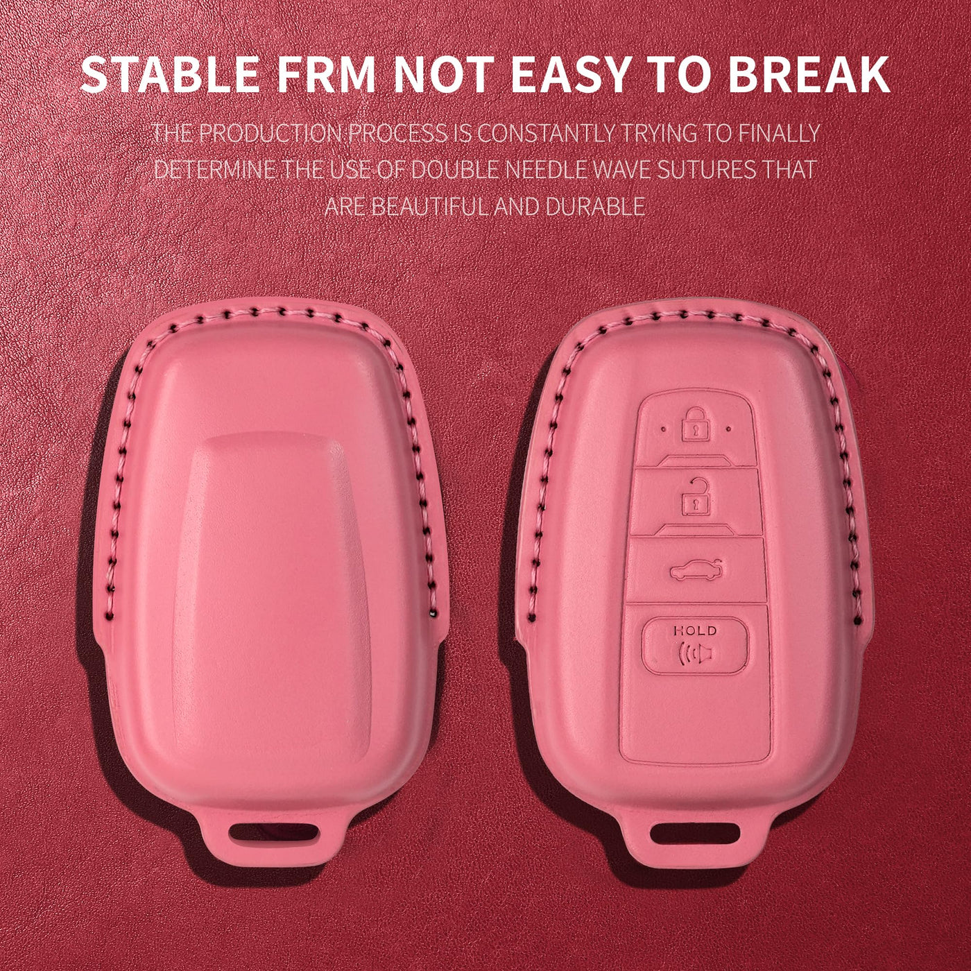 Tukellen For Toyota Key Fob Cover Genuine Leather With Keychain,Leather Key Case Protector Compatible With 2020-2022 Highlander Corolla Prius 2018-2024 Rav4 Camry Avalon C-Hr Gt86 -Pink