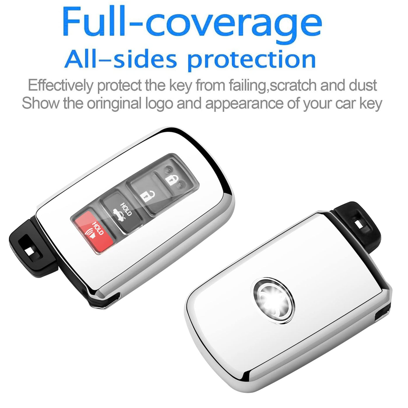 Tukellen For Toyota Key Fob Cover,Special Soft Tpu Key Case Protector Shell Compatible With Tundra Tocoma Sequoia 4Runner Highlander Rav4 Camry Corolla Avalon-Silver