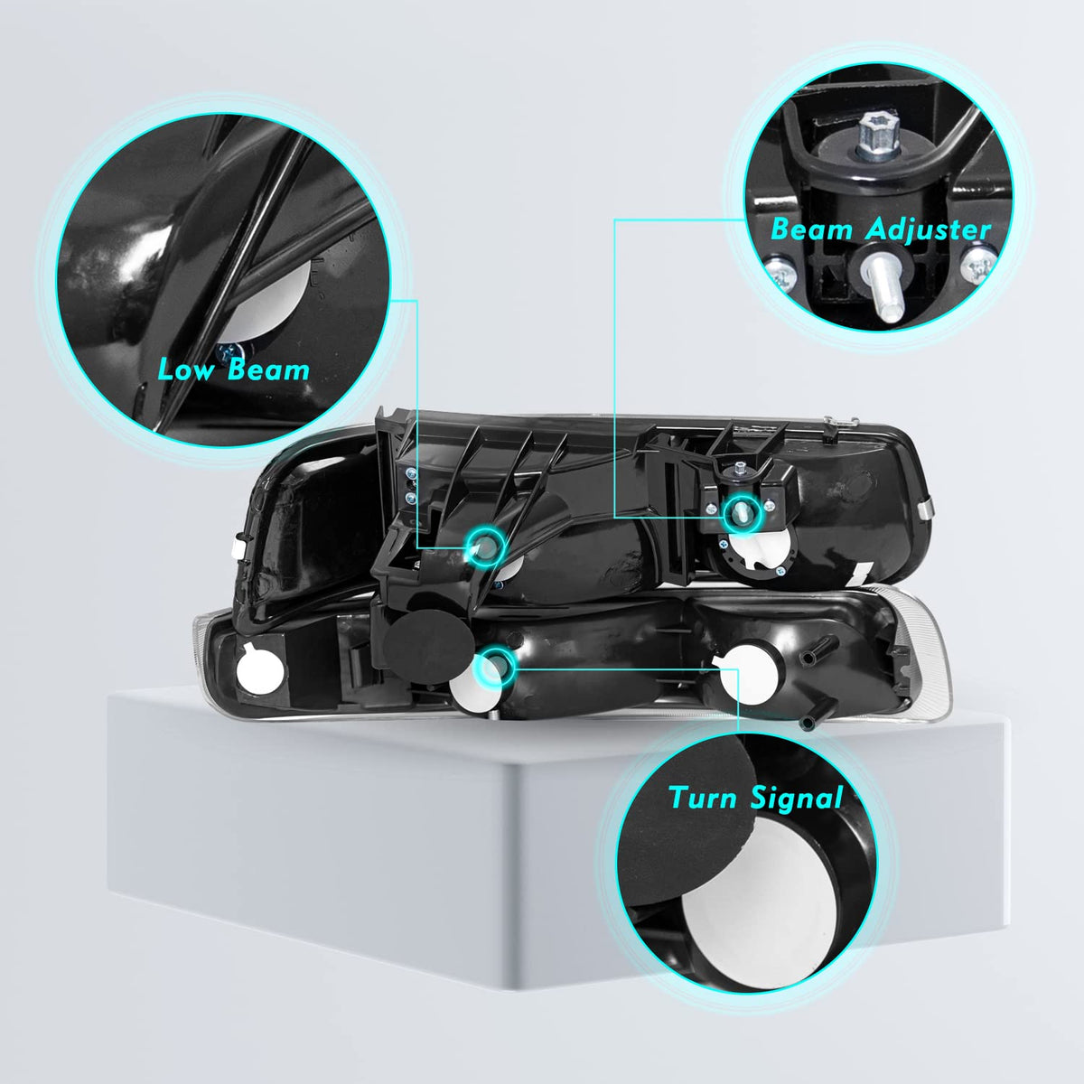 Tusdar 4Pcs Fit For 99-07 Gmc Sierra 1500 Headlight Assembly 99-04 Sierra 2500, 01-07 Sierra 1500Hd 2500Hd 3500Hd, 99-06 Yukon, 00-06 Yukon Xl 1500 2500,Not Fit Denali Model