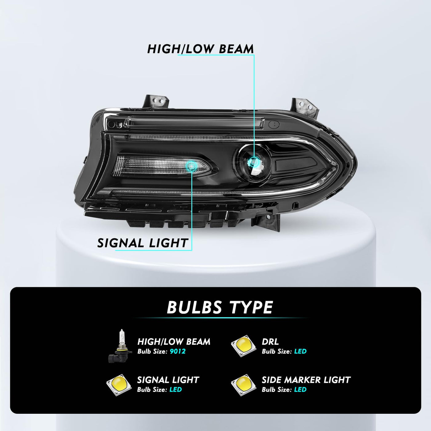 ?Suitable Models?Headlights Assembly Compatible With 15-22 Dodge Charger Halogen Headlight Models. Not Compatible With Hid Models; High Beam/ Low Beam: 9012. Signal Light: Led, Side Marker Light:Led, Drl:Led, Bulbs Are Included | ?Premium Design?The Special Surface Coating Makes The Lens Scratchproof In Compliance With Dot & Sae Regulations; Plug-N-Play Operation, Direct Original Equipment Replacement For The Stock Unit; Fully Sealed, Waterproof, Dust Resistant And Corrosion Resistant | ?Visibility Higher & Driving Safer?This Headlight Helps To Increase The Brightness So You Can See The Road Clearly At Night Or In Extreme Weather. Better Visibility Can Help You Avoid Traffic Accidents And Make Your Driving Safer | ?Replacement?Oem Part Number: 68410312Ad, 68214397Ab, 68294431Af, 68410313Ad, 68214396Ab, 68294430Af, Ch2503337, Ch2502296, Ch2502270, Ch2502337, Ch2503296, Ch2503270 | ?Warranty?This Headlight Assembly Will Come With 30 Days Hassle-Free Return & 1 Yrar Unlimited Replacement Promise. If You Don'T Like It, Just Return It And Get A Full Refund. All We Wanna Do Is To Make You Love Tusdar Products