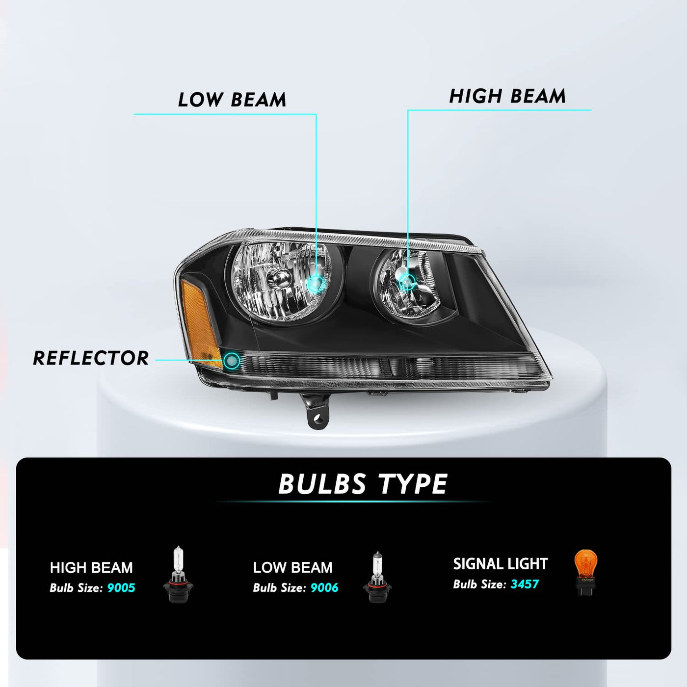 ?Suitable Models?Headlights Assembly Compatible With 2008-2014 Dodge Avenger. High Beam Bulb Type: 9005; Low Beam Bulb Type: 9006. Signal Light:3457. Bulbs Are Not Included. | ?Premium Design?The Special Surface Coating Makes The Lens Scratchproof In Compliance With Dot & Sae Regulations; Plug-N-Play Operation, Direct Original Equipment Replacement For The Stock Unit; Fully Sealed, Waterproof, Dust Resistant And Corrosion Resistant | ?Visibility Higher & Driving Safer?This Headlight Helps To Increase The Brightness So You Can See The Road Clearly At Night Or In Extreme Weather. Better Visibility Can Help You Avoid Traffic Accidents And Make Your Driving Safer | ?Replacement?Oem Part Number: 5116343Ad, 5116342Ad, 5303745Ad, 5303744Ad | ?Warranty?This Headlight Assembly Will Come With 30 Days Hassle-Free Return & 1 Yrar Unlimited Replacement Promise. If You Don'T Like It, Just Return It And Get A Full Refund. All We Wanna Do Is To Make You Love Tusdar Products